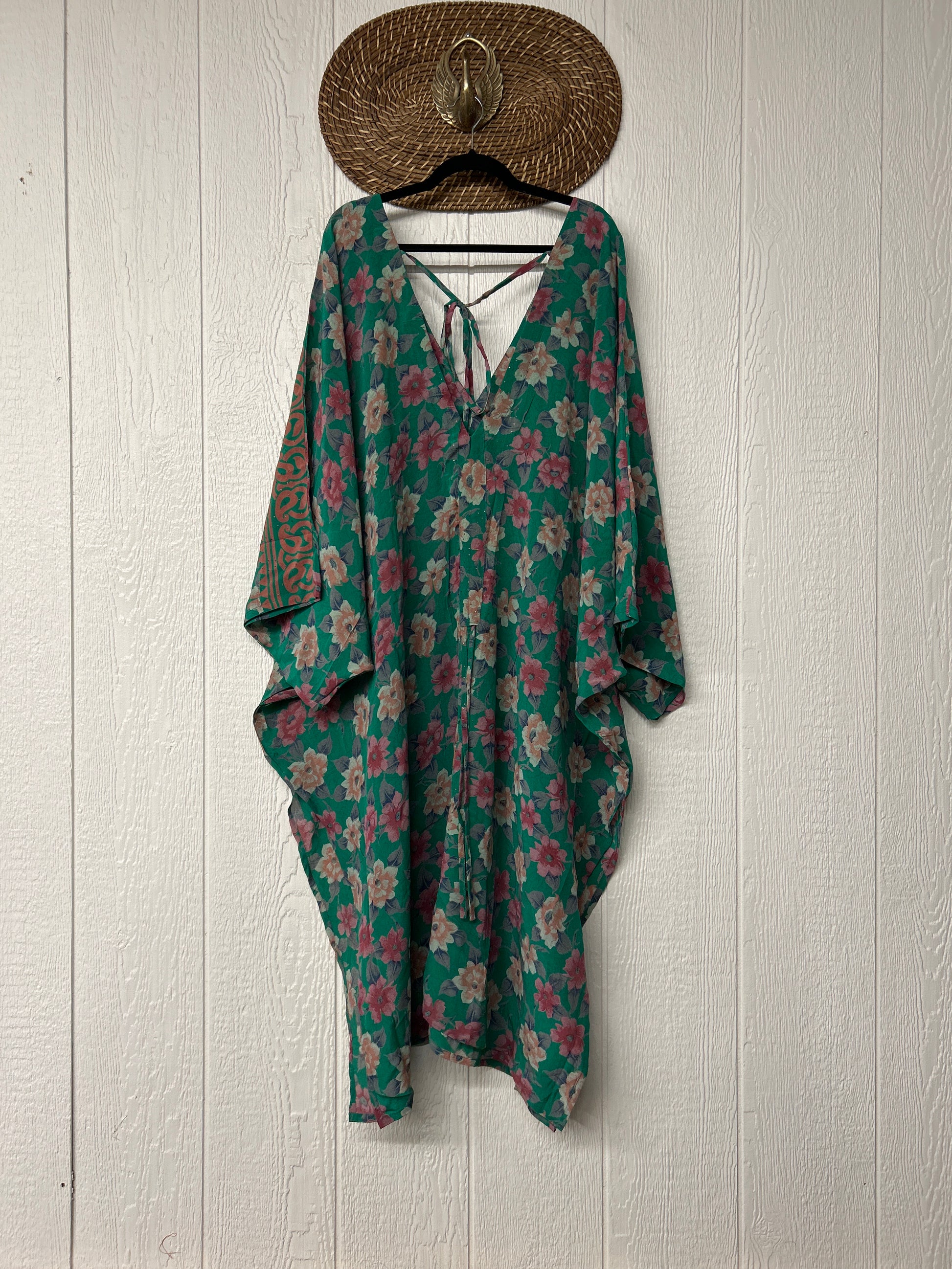 Fabrics may have small threads or holes in the layers. Color inconsistency or small stains may be present. The saris are sewn together and extend the life of each design. Imperfections should be celebrated.