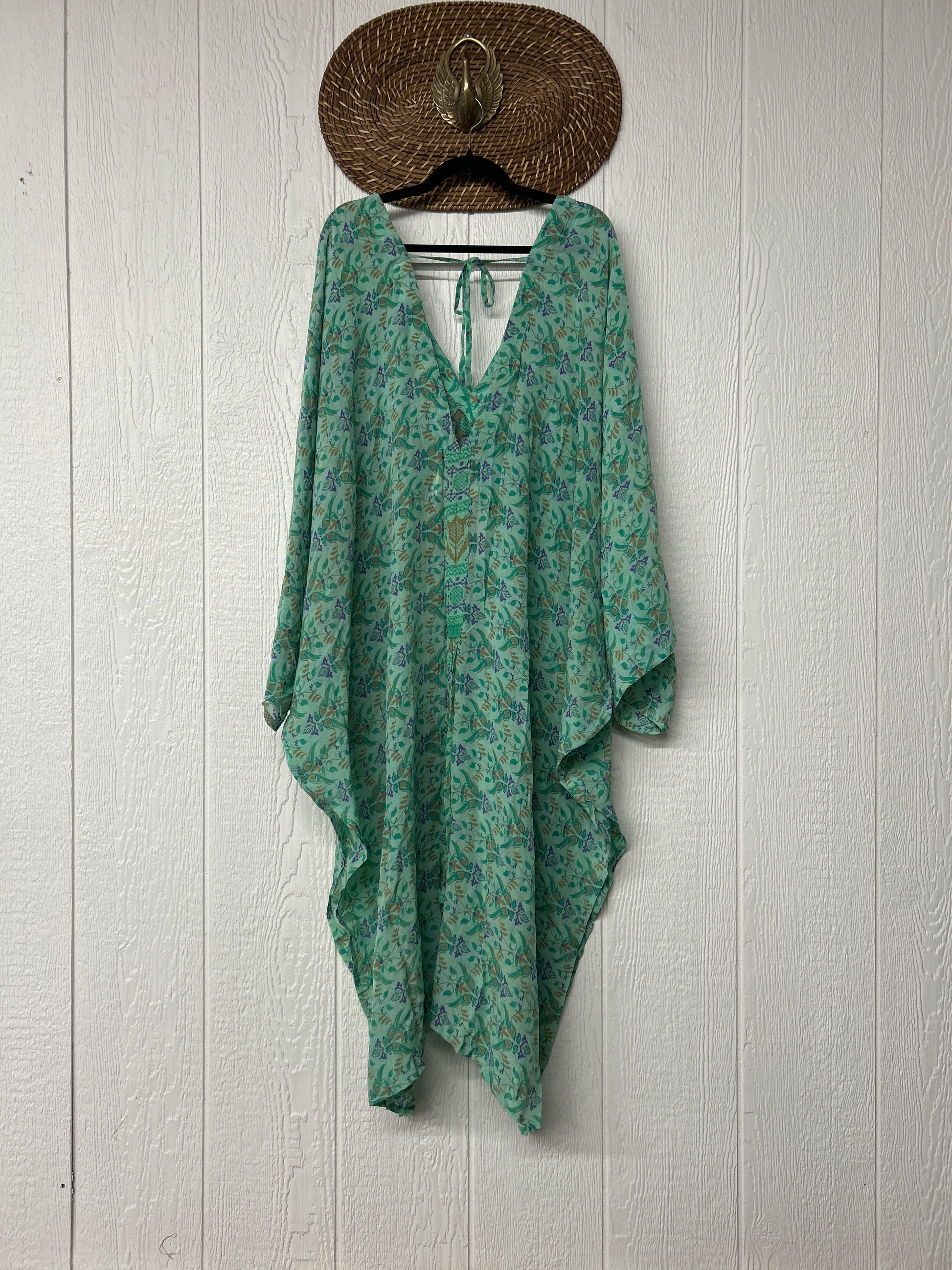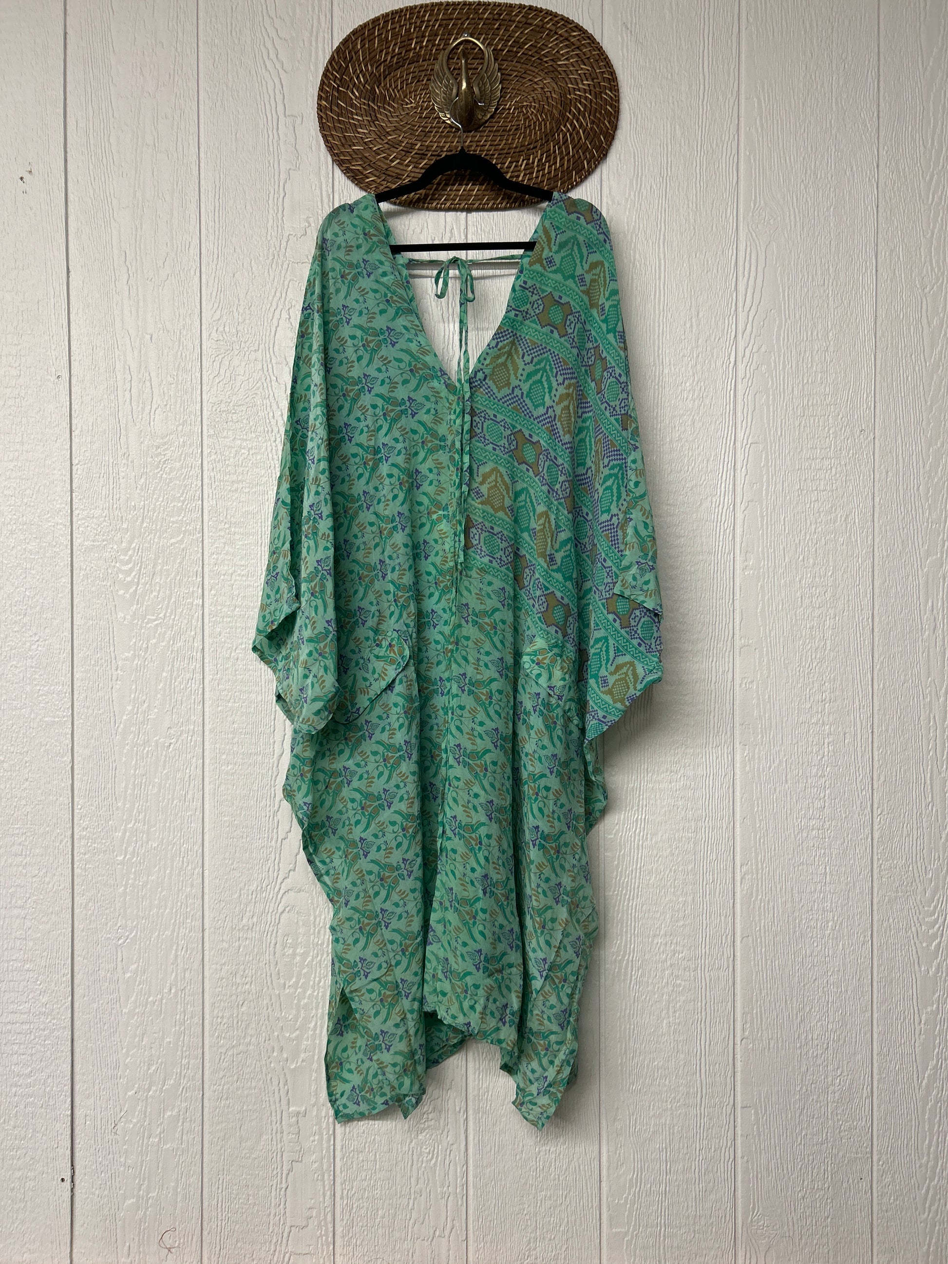 Fabrics may have small threads or holes in the layers. Color inconsistency or small stains may be present. The saris are sewn together and extend the life of each design. Imperfections should be celebrated.