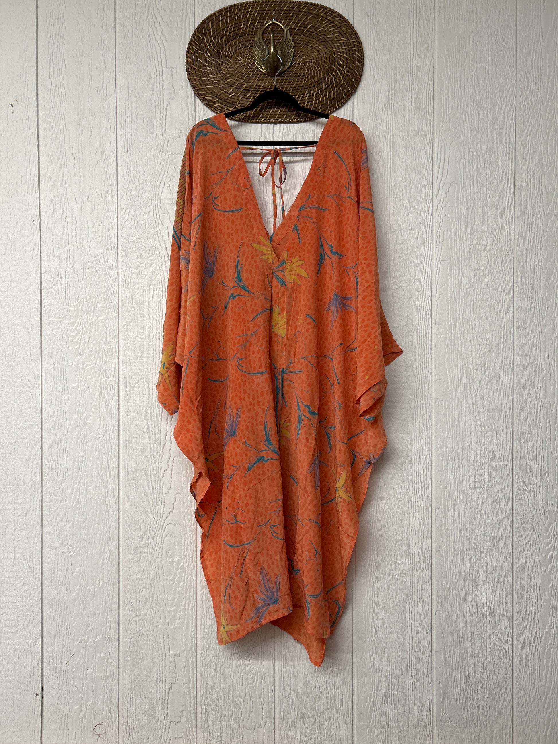 Fabrics may have small threads or holes in the layers. Color inconsistency or small stains may be present. The saris are sewn together and extend the life of each design. Imperfections should be celebrated.