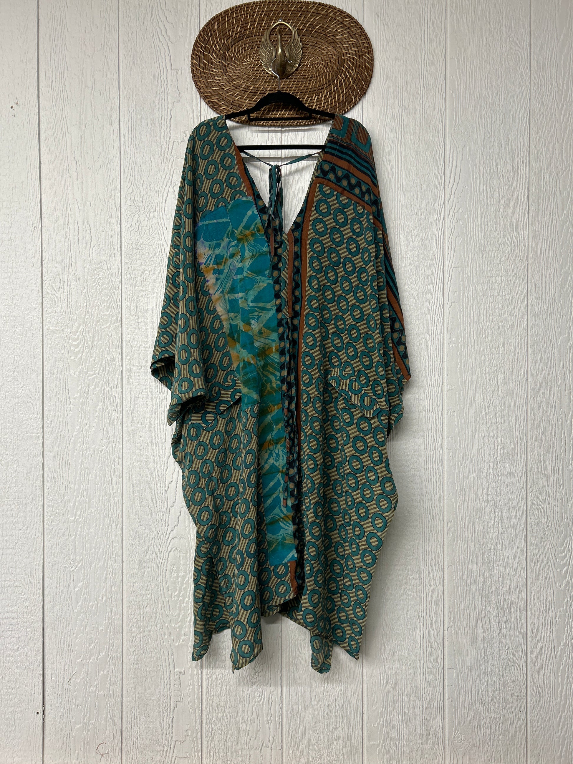 Fabrics may have small threads or holes in the layers. Color inconsistency or small stains may be present. The saris are sewn together and extend the life of each design. Imperfections should be celebrated.