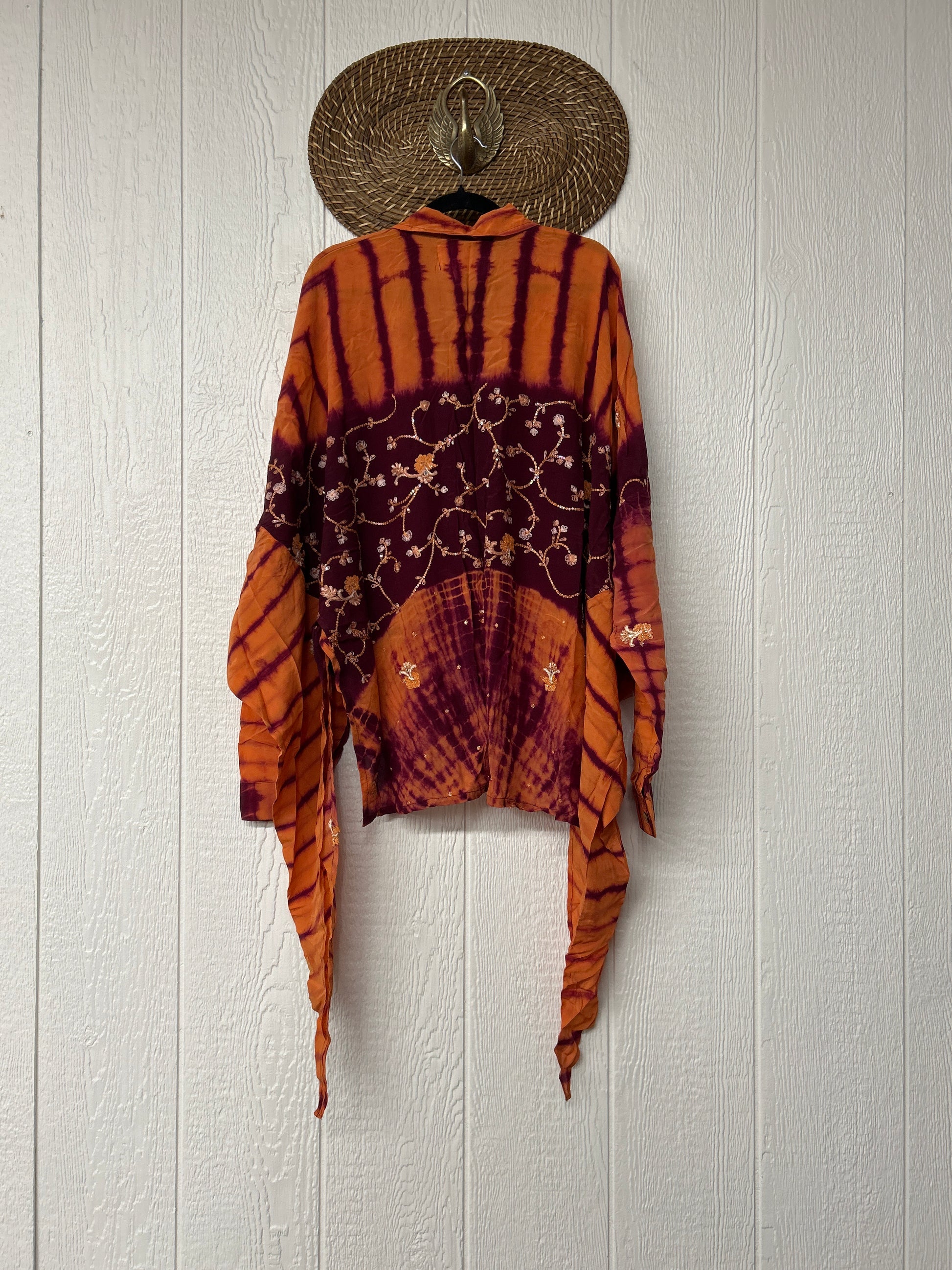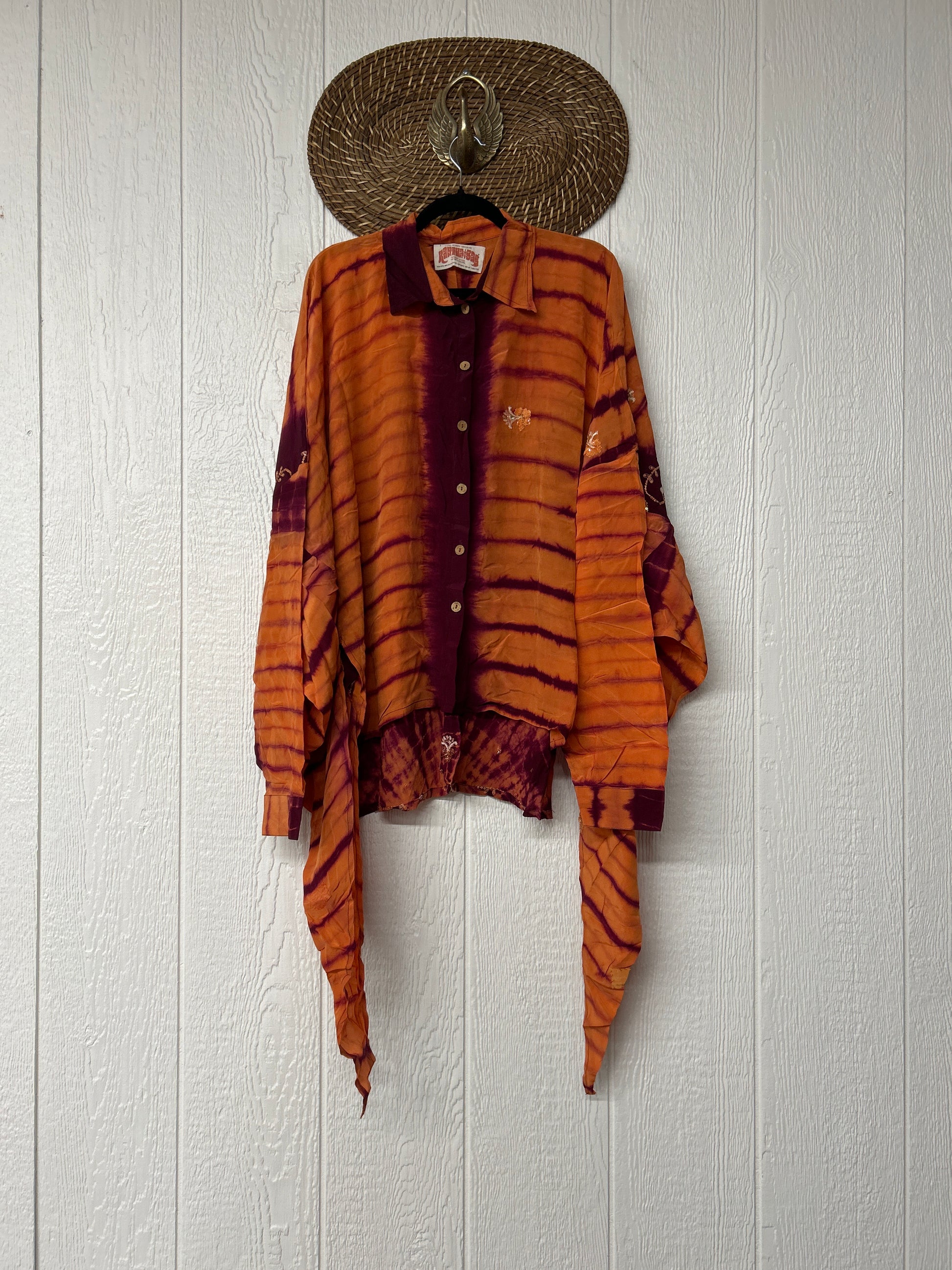 Crafted from our ultra lux vintage crepe sari this floaty dream features a Button-down placket with a high low hem, collar, and button cuffs.