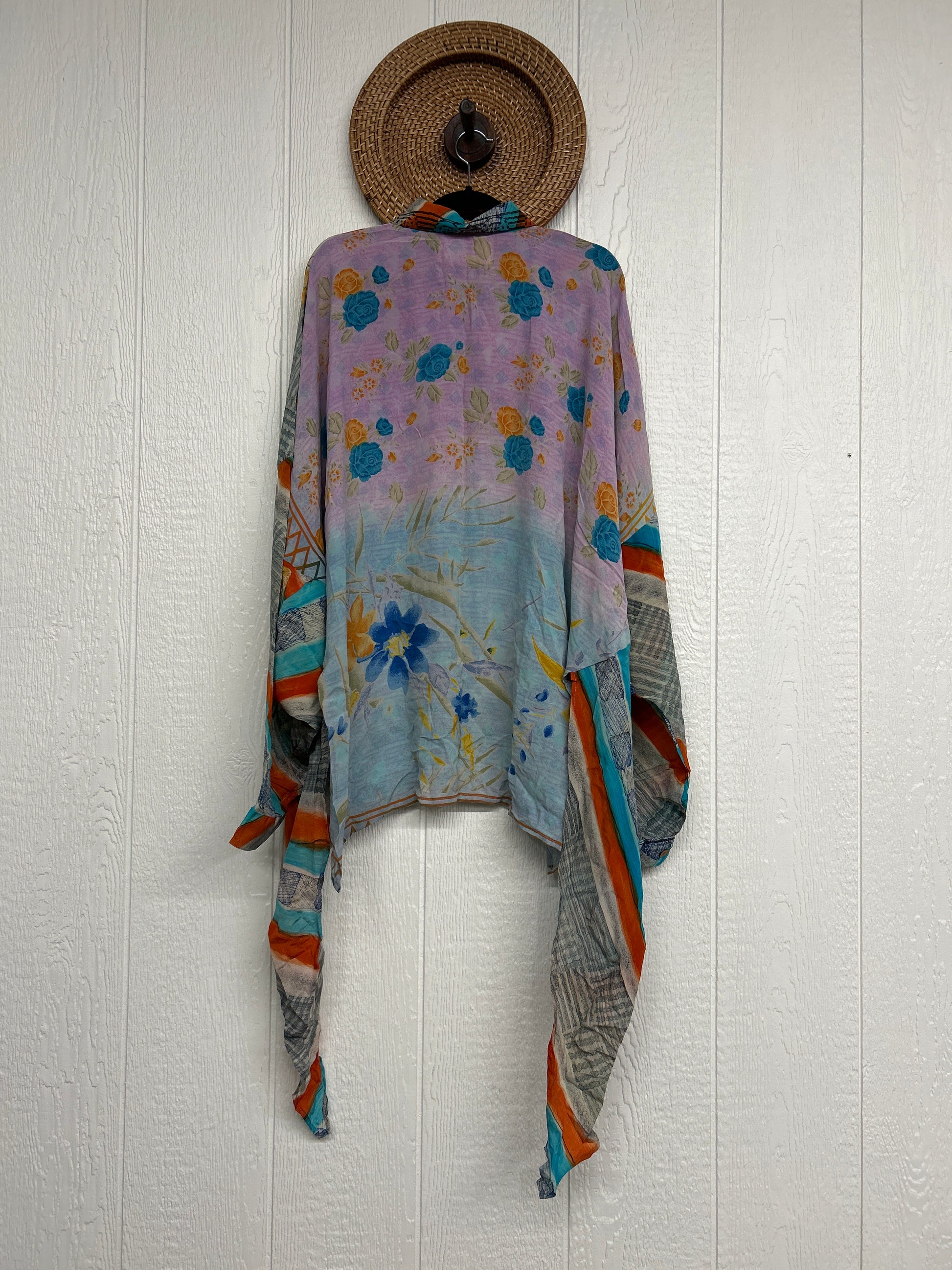 Crafted from our ultra lux vintage crepe sari this floaty dream features a Button-down placket with a high low hem, collar, and button cuffs.