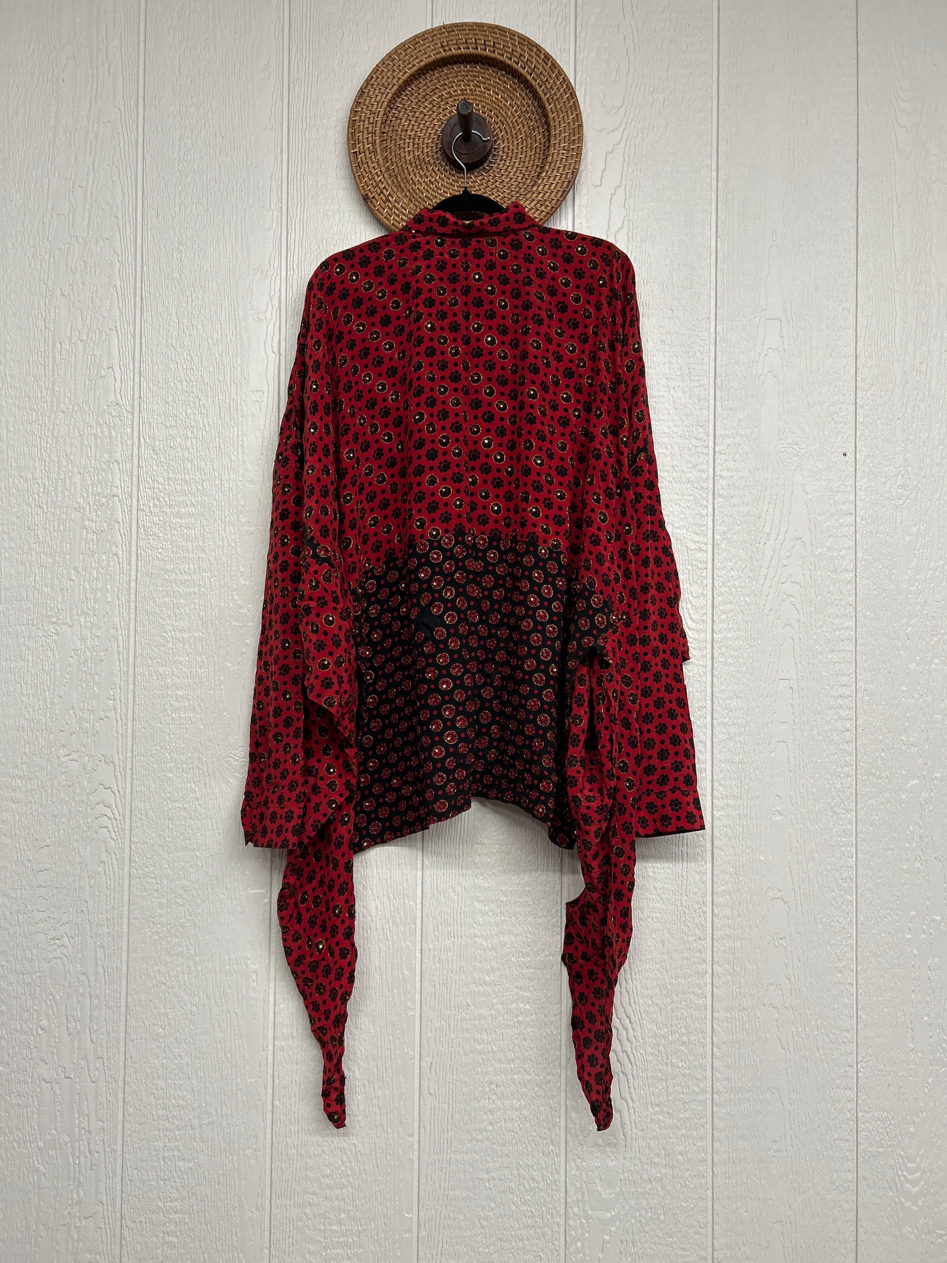 Crafted from our ultra lux vintage crepe sari this floaty dream features a Button-down placket with a high low hem, collar, and button cuffs.