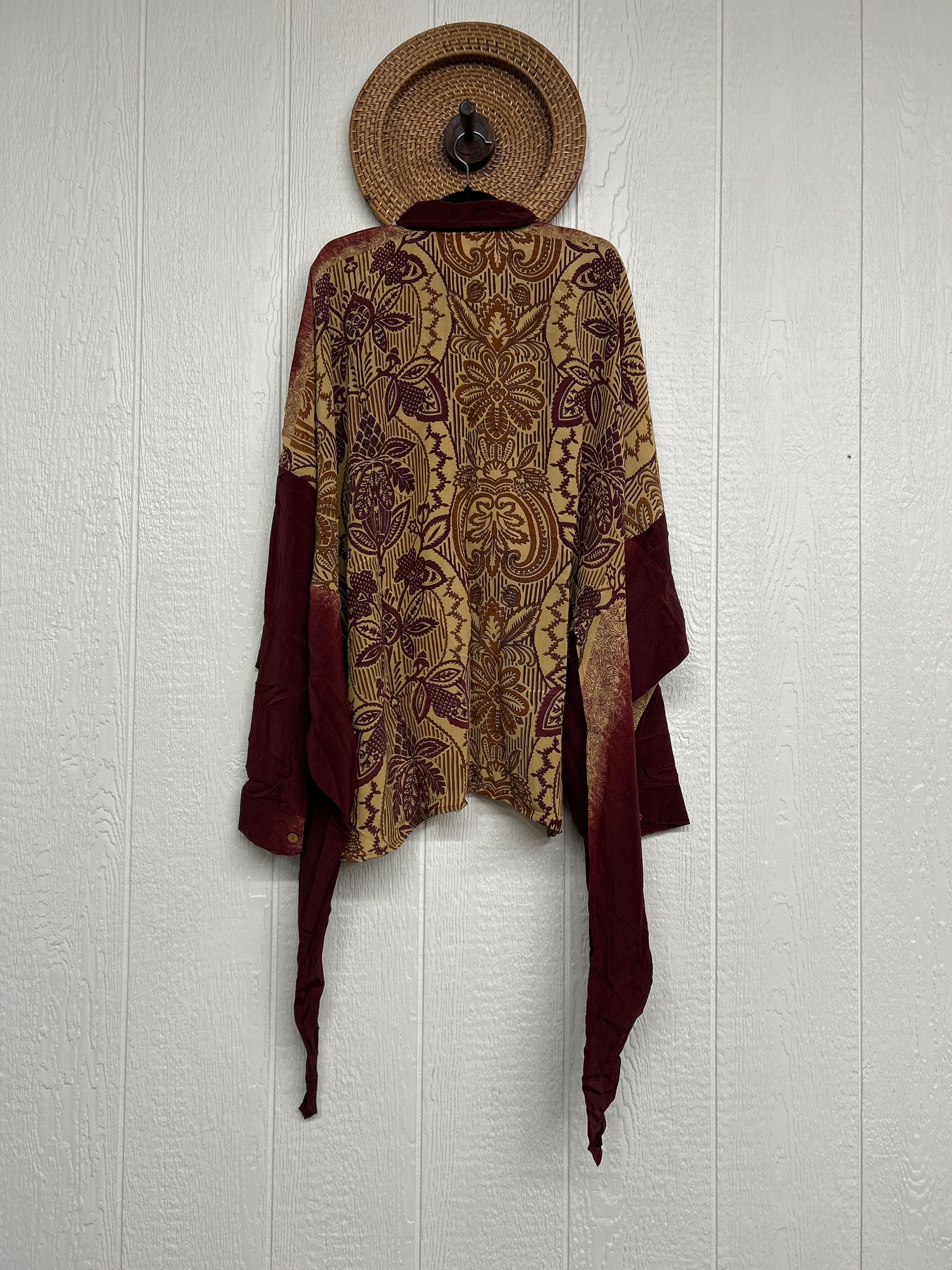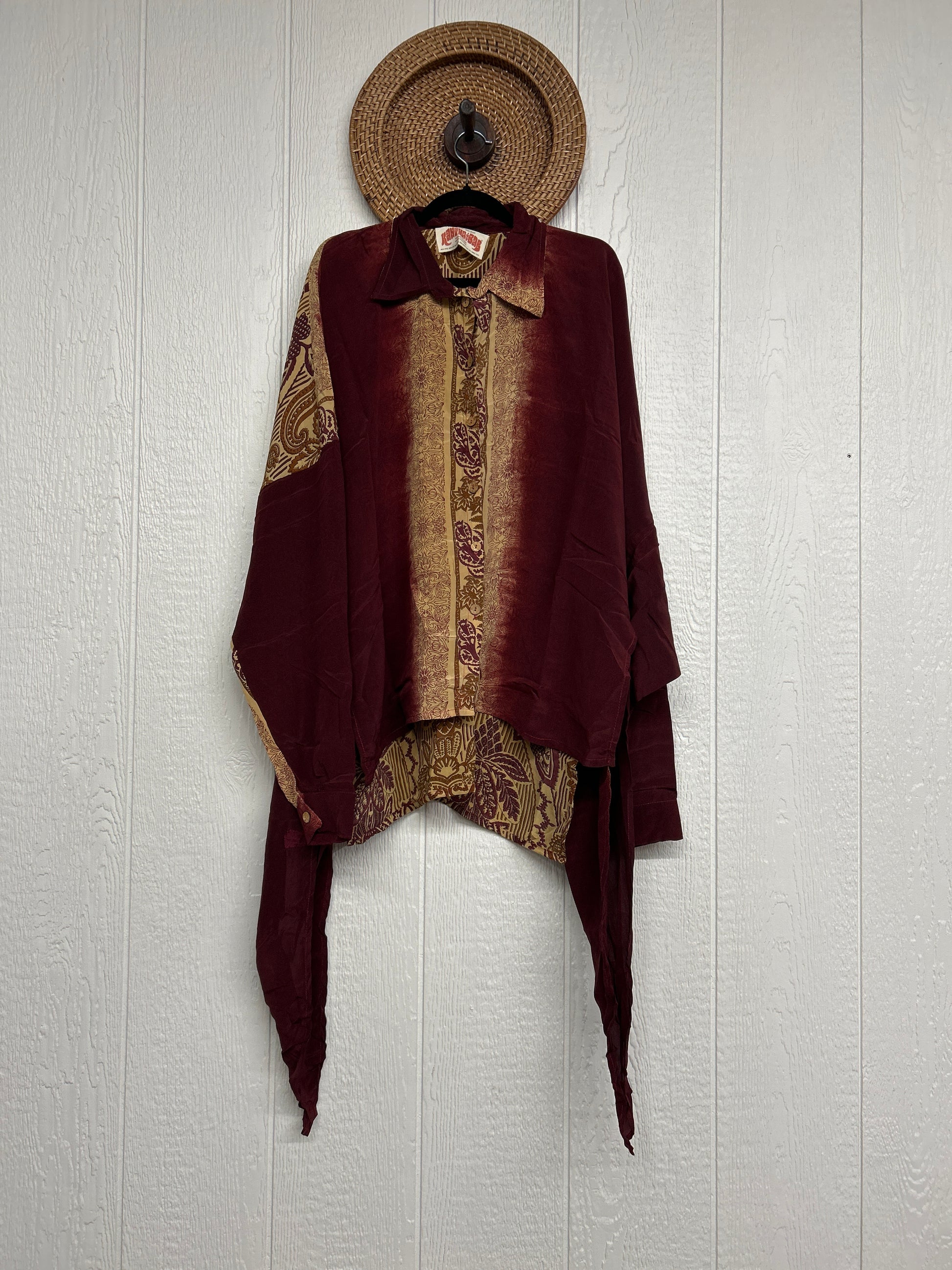 Crafted from our ultra lux vintage crepe sari this floaty dream features a Button-down placket with a high low hem, collar, and button cuffs.