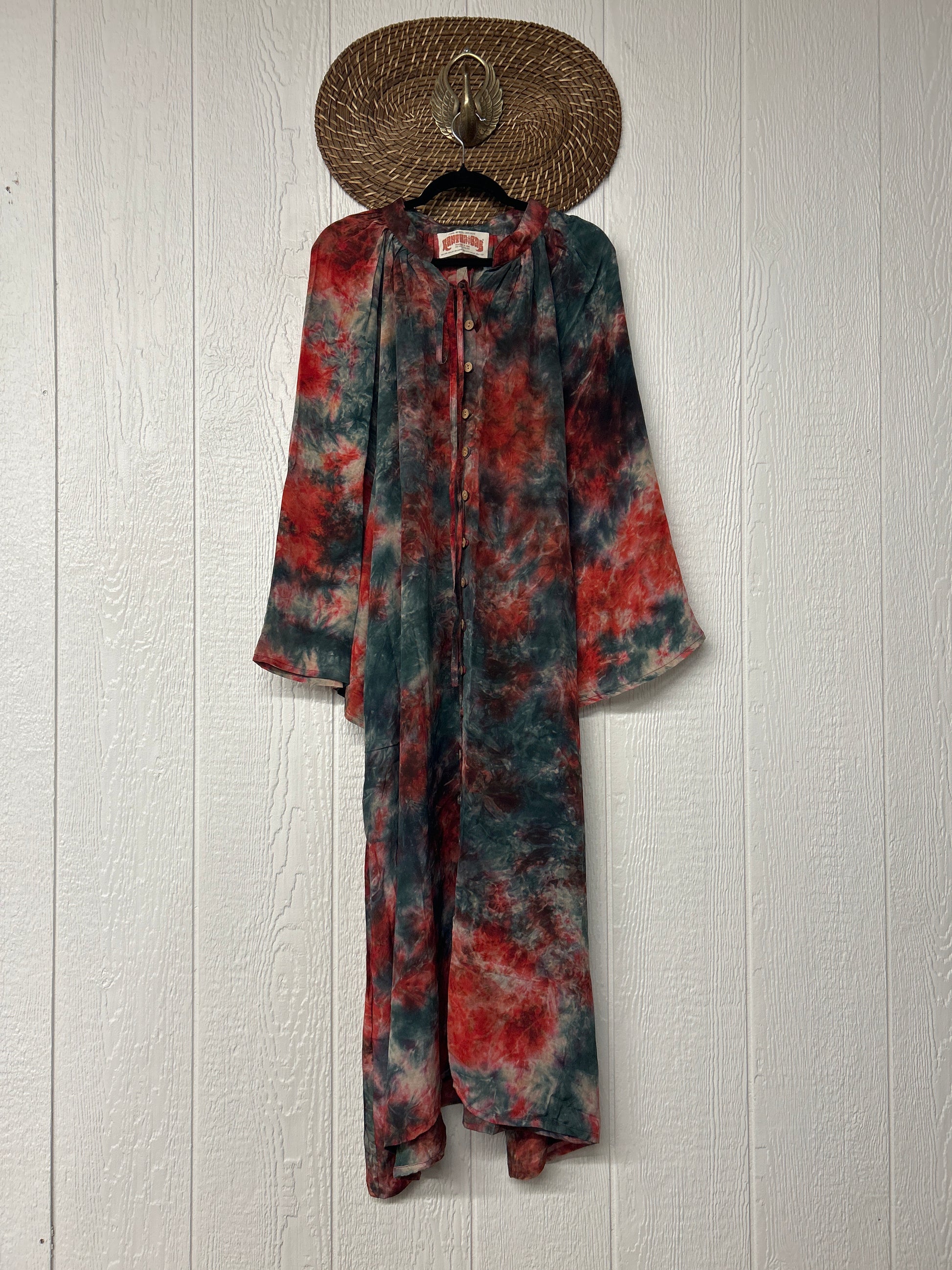 The Woodstock Duster Dress can be buttoned up as a maxi dress or worn open