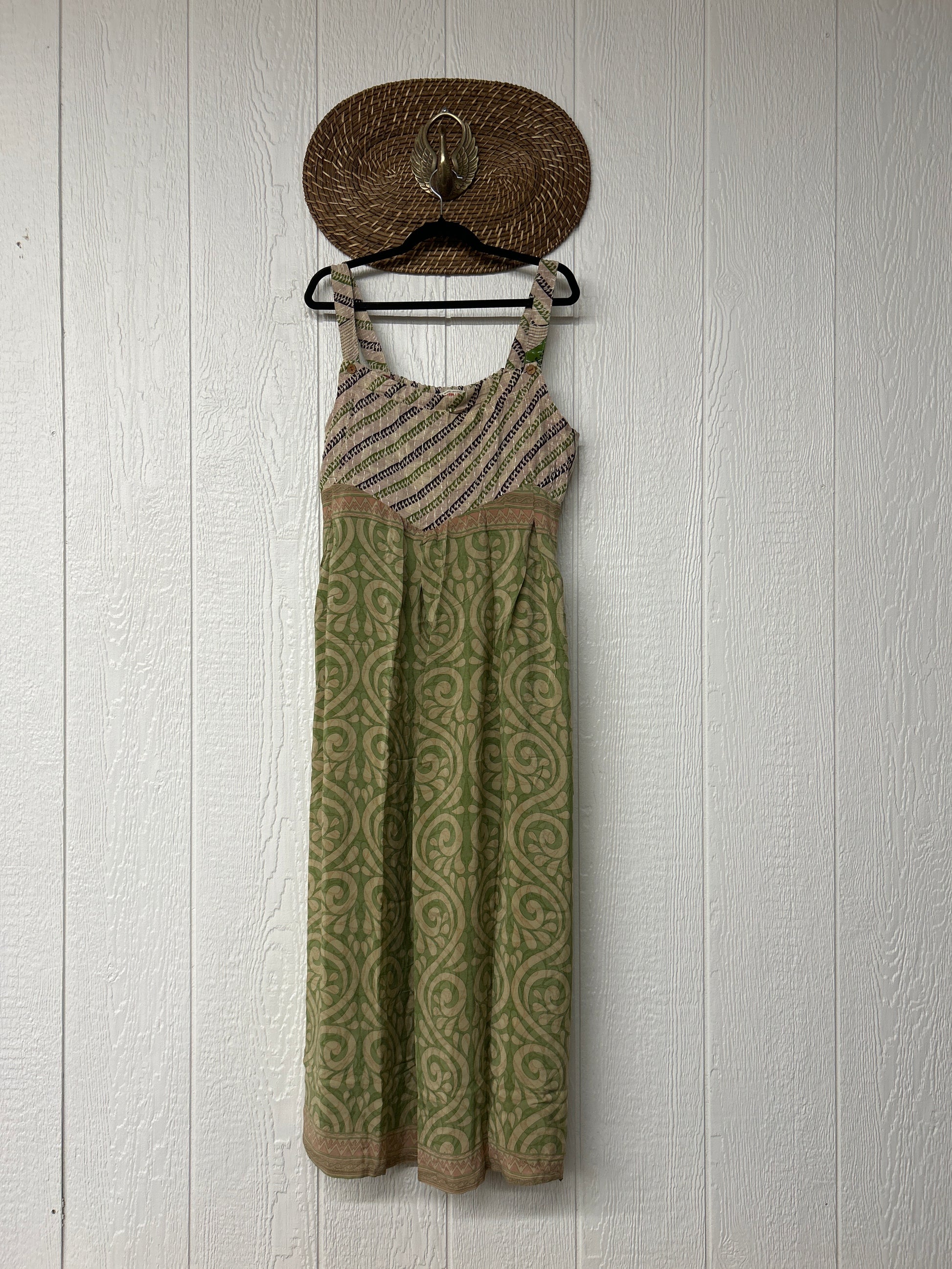 Perfect for EVERY season this overall dress features a kantha bib front with center pocket, adjustable button straps, tie back, crepe skirt and interior pockets on the skirt.