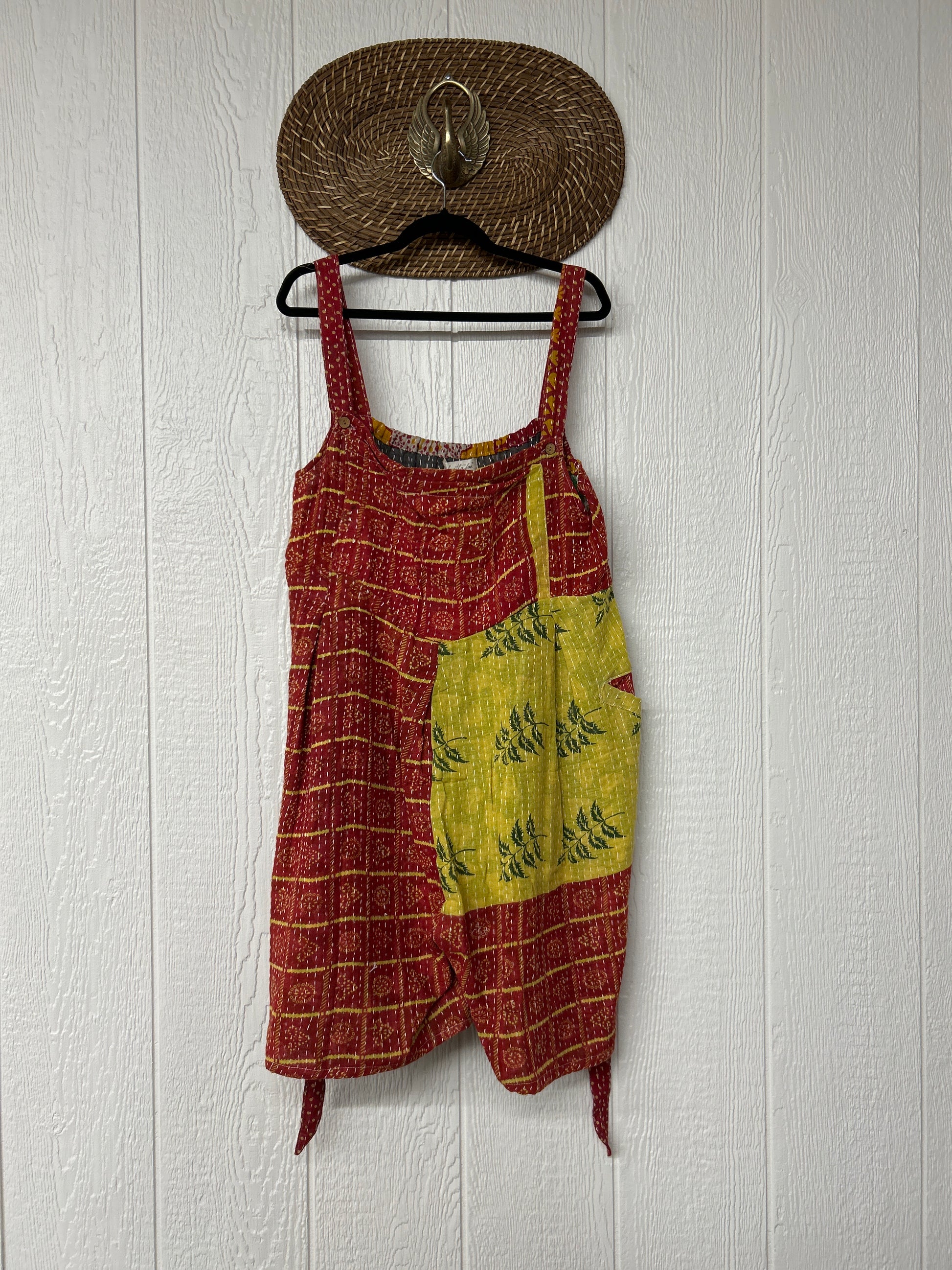 Fabrics may have small threads or holes in the layers. Color inconsistency or small stains may be present. The saris are sewn together and extend the life of each design.