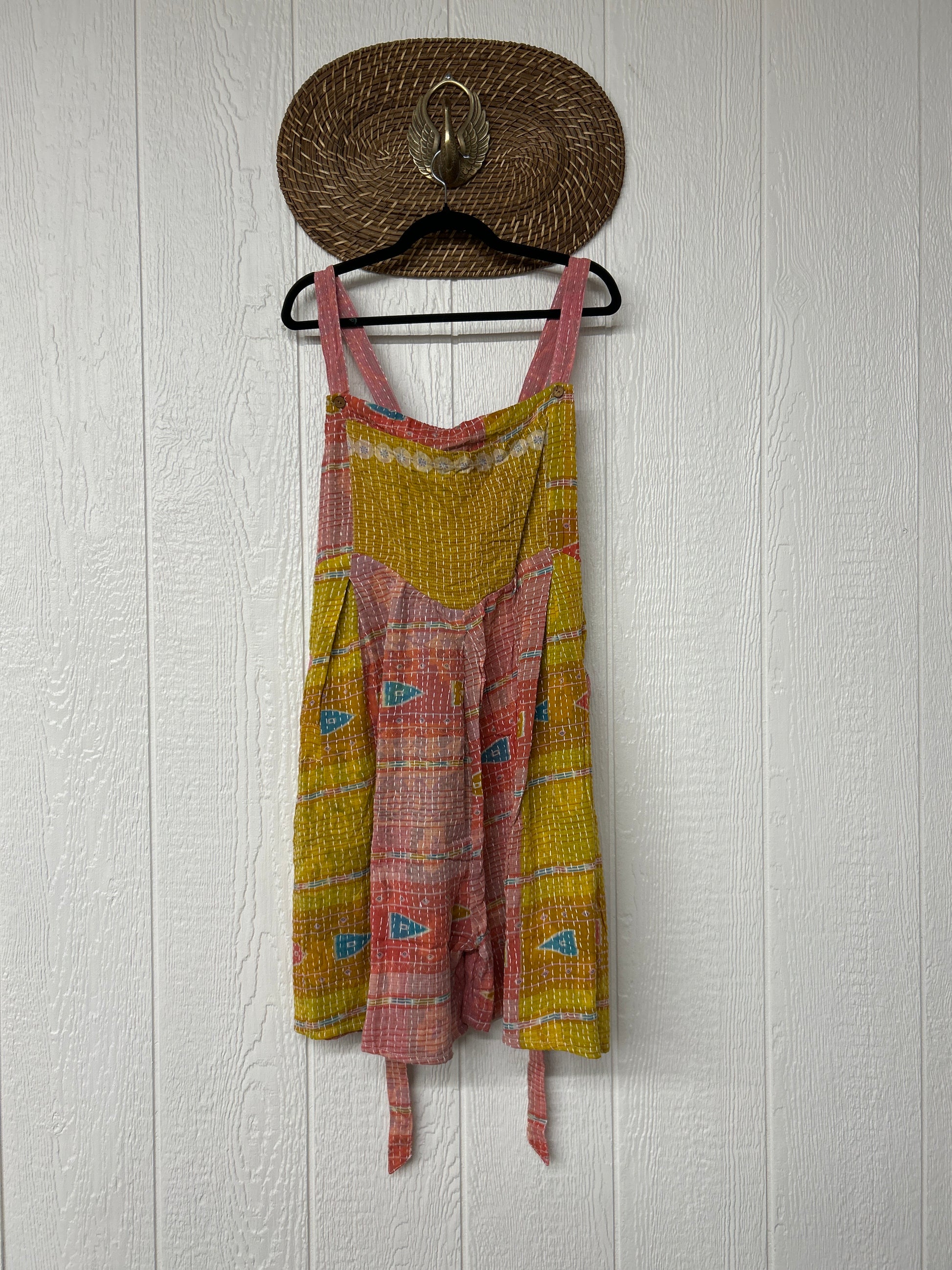 Fabrics may have small threads or holes in the layers. Color inconsistency or small stains may be present. The saris are sewn together and extend the life of each design.