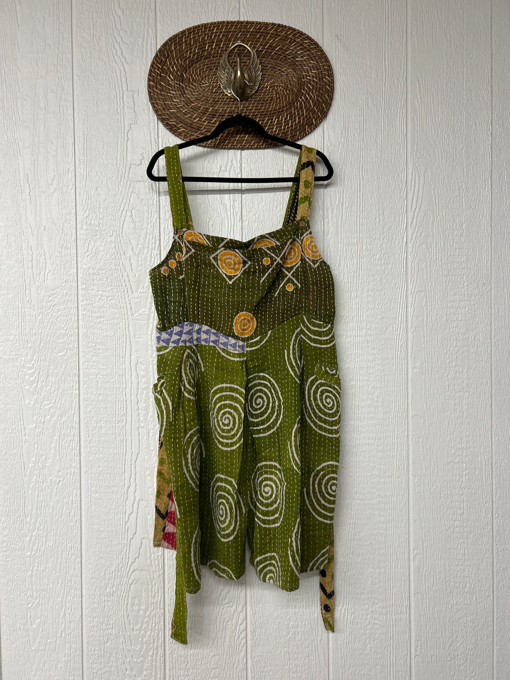 Fabrics may have small threads or holes in the layers. Color inconsistency or small stains may be present. The saris are sewn together and extend the life of each design.