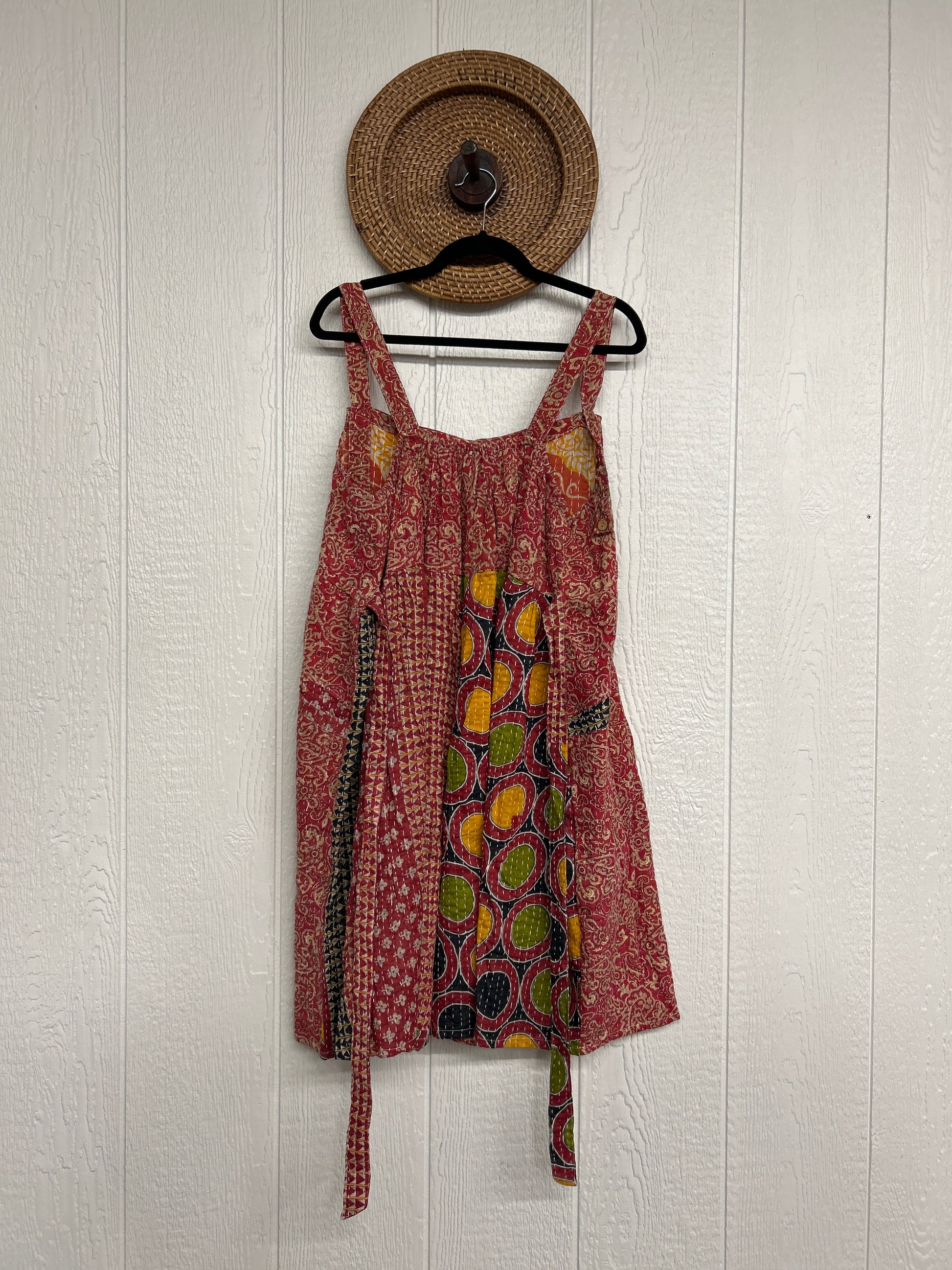 Fabrics may have small threads or holes in the layers. Color inconsistency or small stains may be present. The saris are sewn together and extend the life of each design.