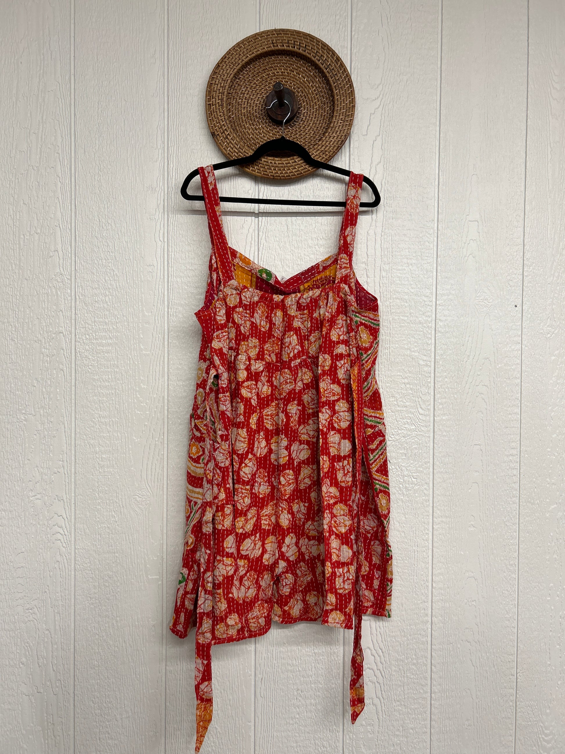 Fabrics may have small threads or holes in the layers. Color inconsistency or small stains may be present. The saris are sewn together and extend the life of each design.