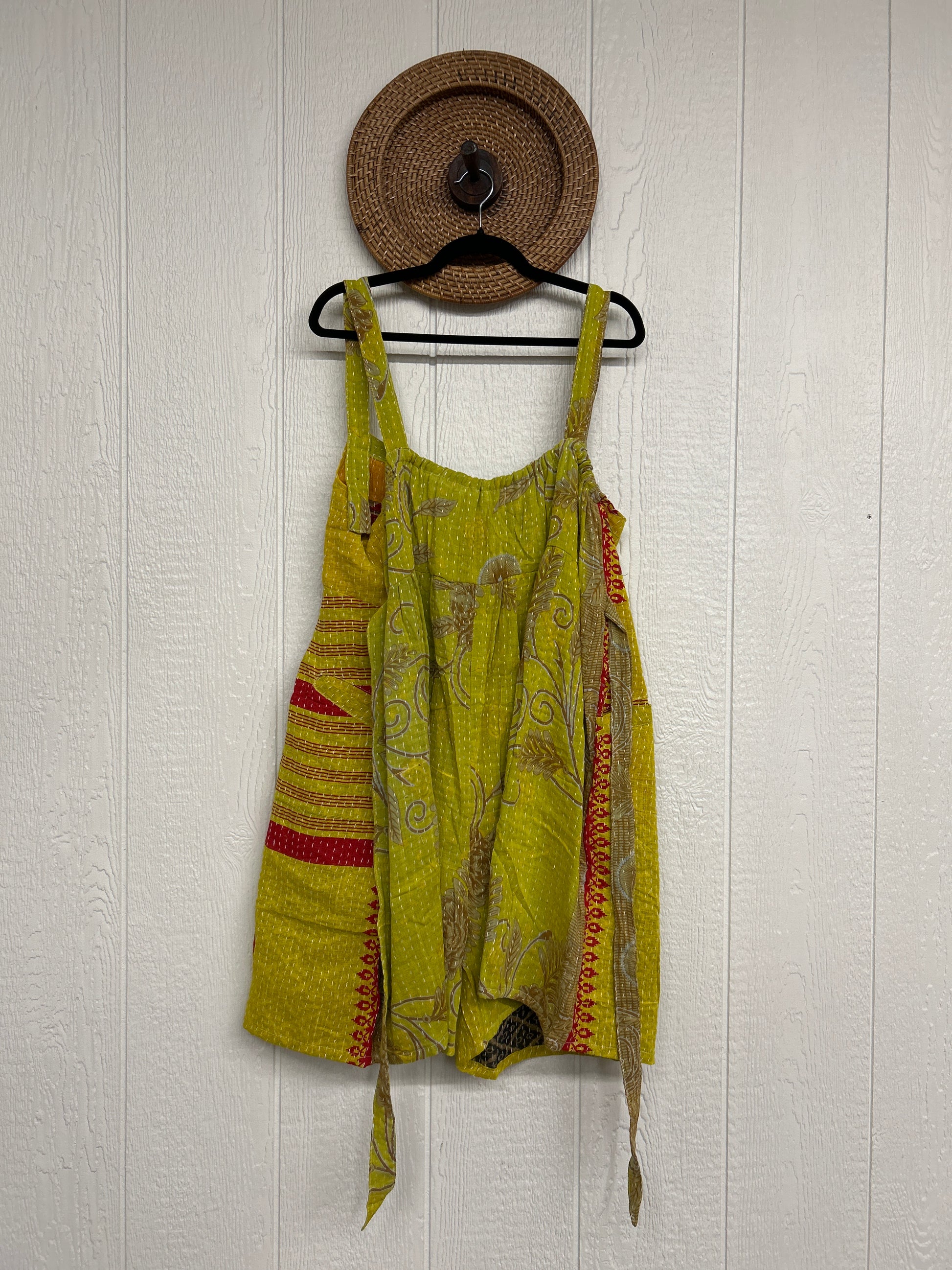 Fabrics may have small threads or holes in the layers. Color inconsistency or small stains may be present. The saris are sewn together and extend the life of each design.