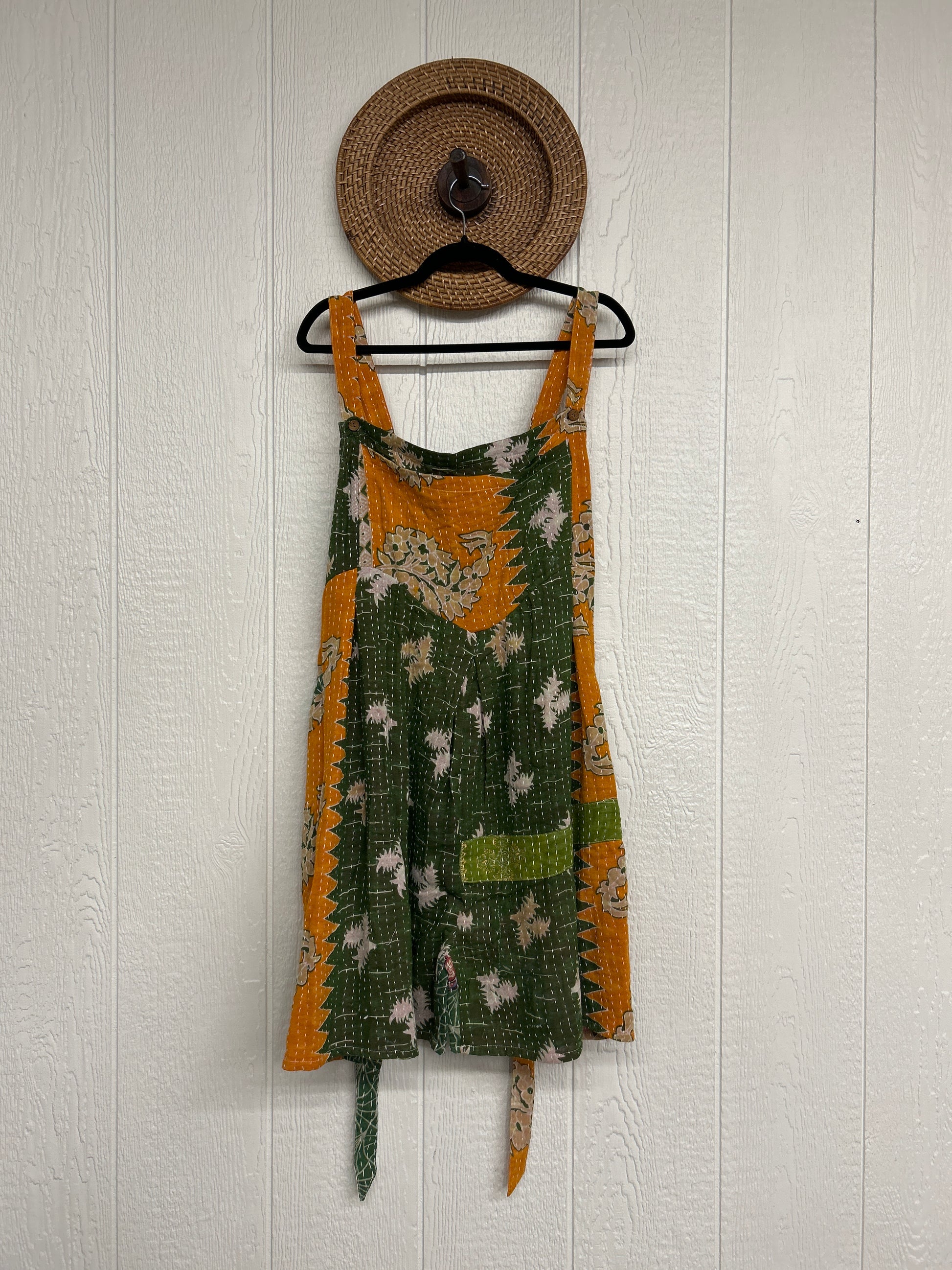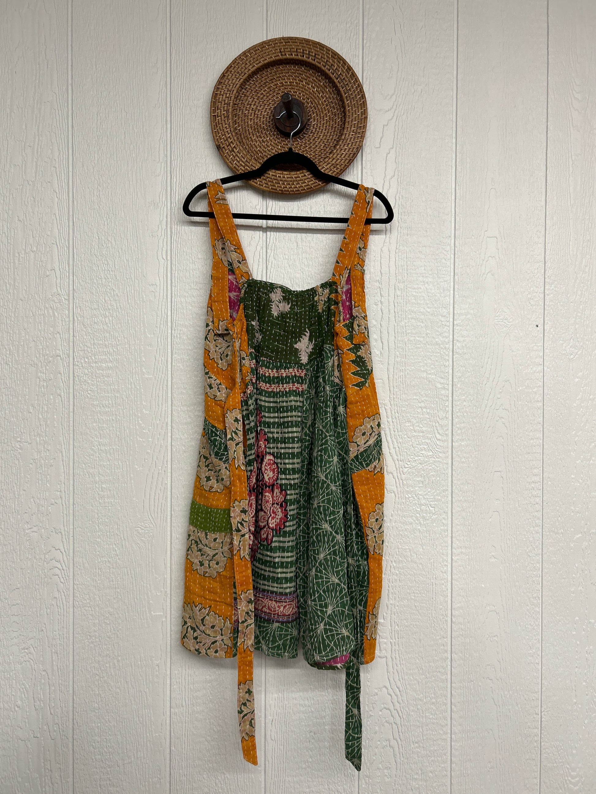 Fabrics may have small threads or holes in the layers. Color inconsistency or small stains may be present. The saris are sewn together and extend the life of each design.