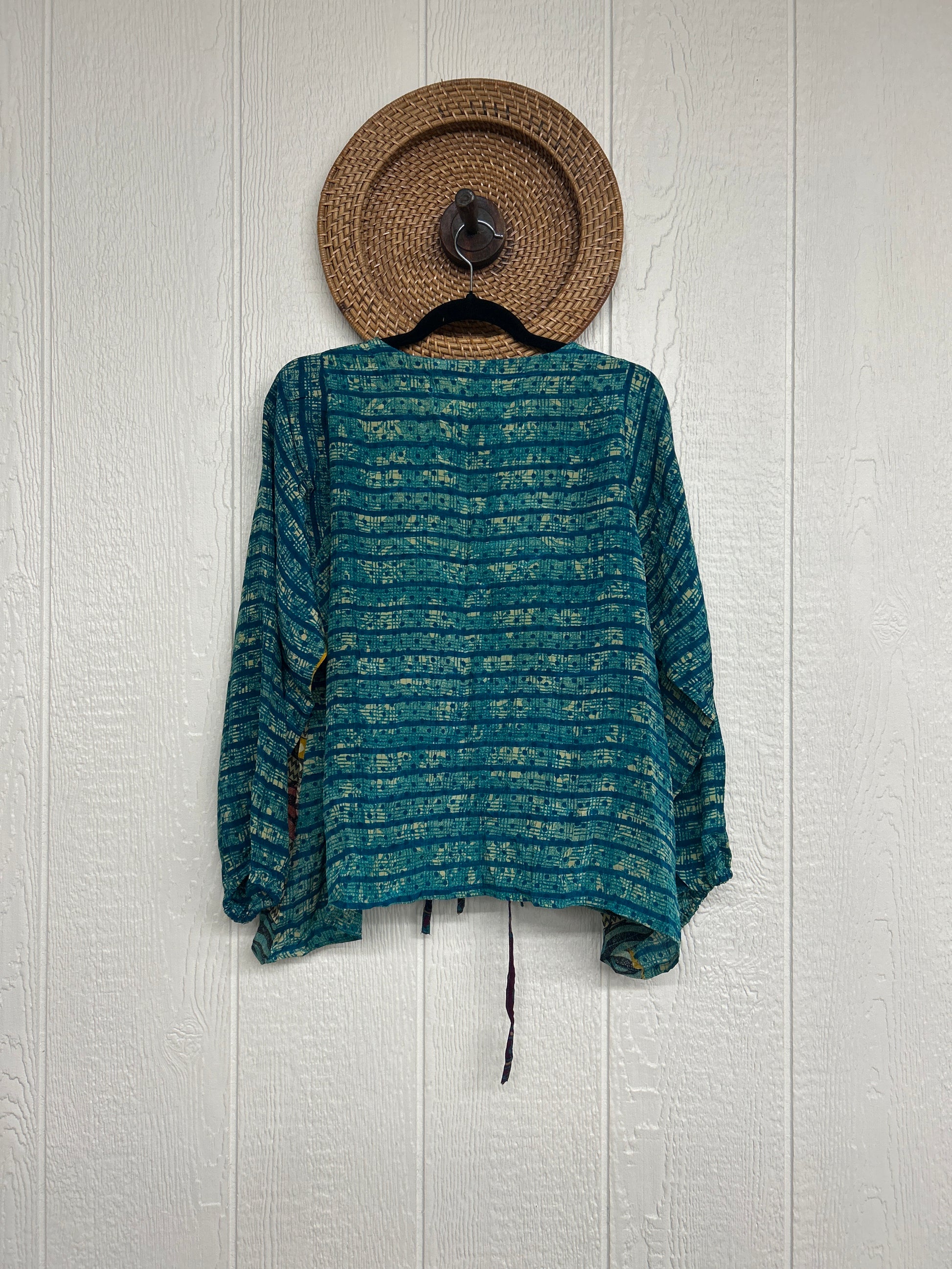 Disclosure: Our vintage styles have lived a full life before becoming the designs in our shop. Fabrics may have small threads or holes in the layers. Color inconsistency or small stains may be present. The saris are sewn together and extend the life of each design.