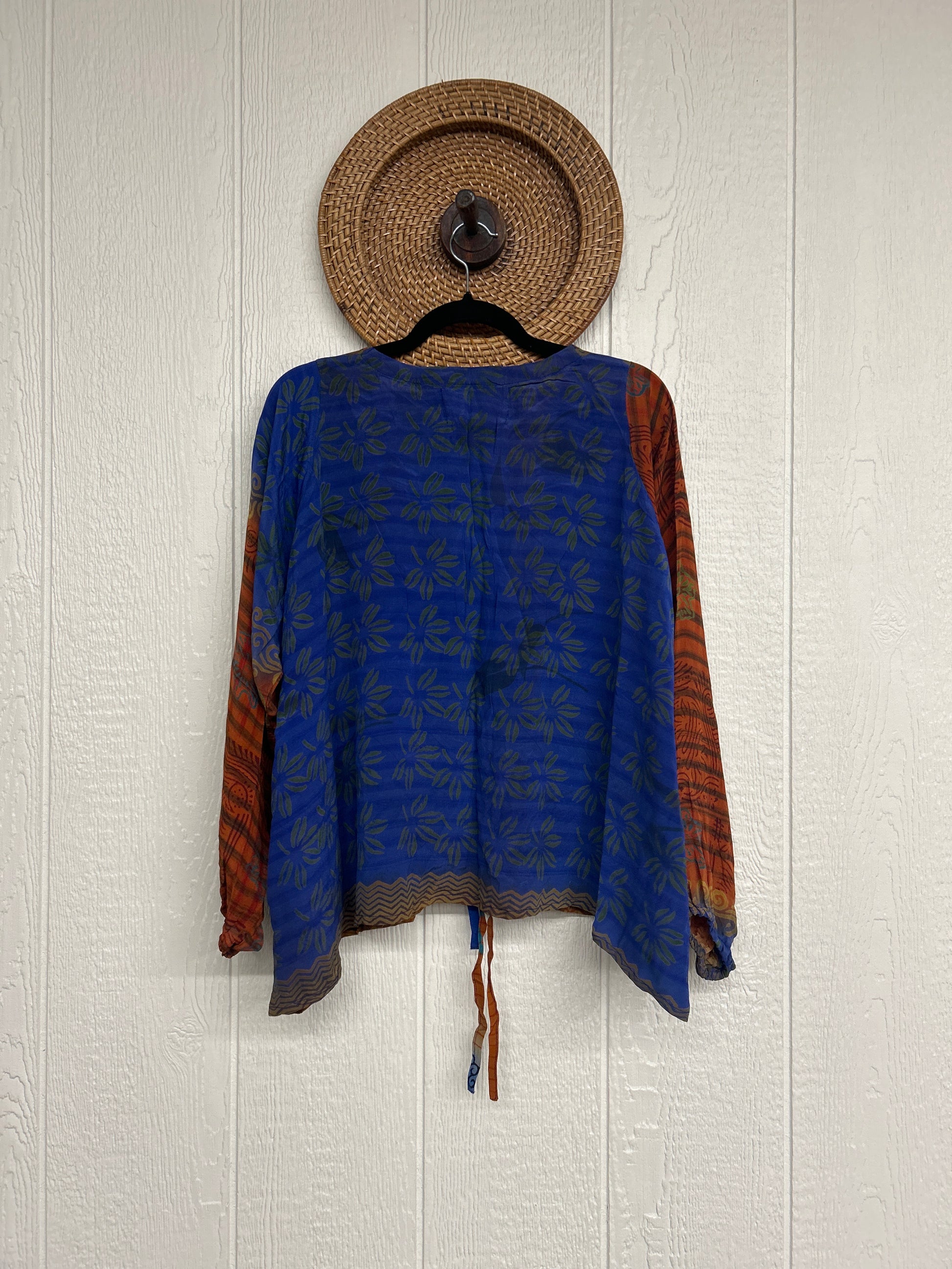 Disclosure: Our vintage styles have lived a full life before becoming the designs in our shop. Fabrics may have small threads or holes in the layers. Color inconsistency or small stains may be present. The saris are sewn together and extend the life of each design.