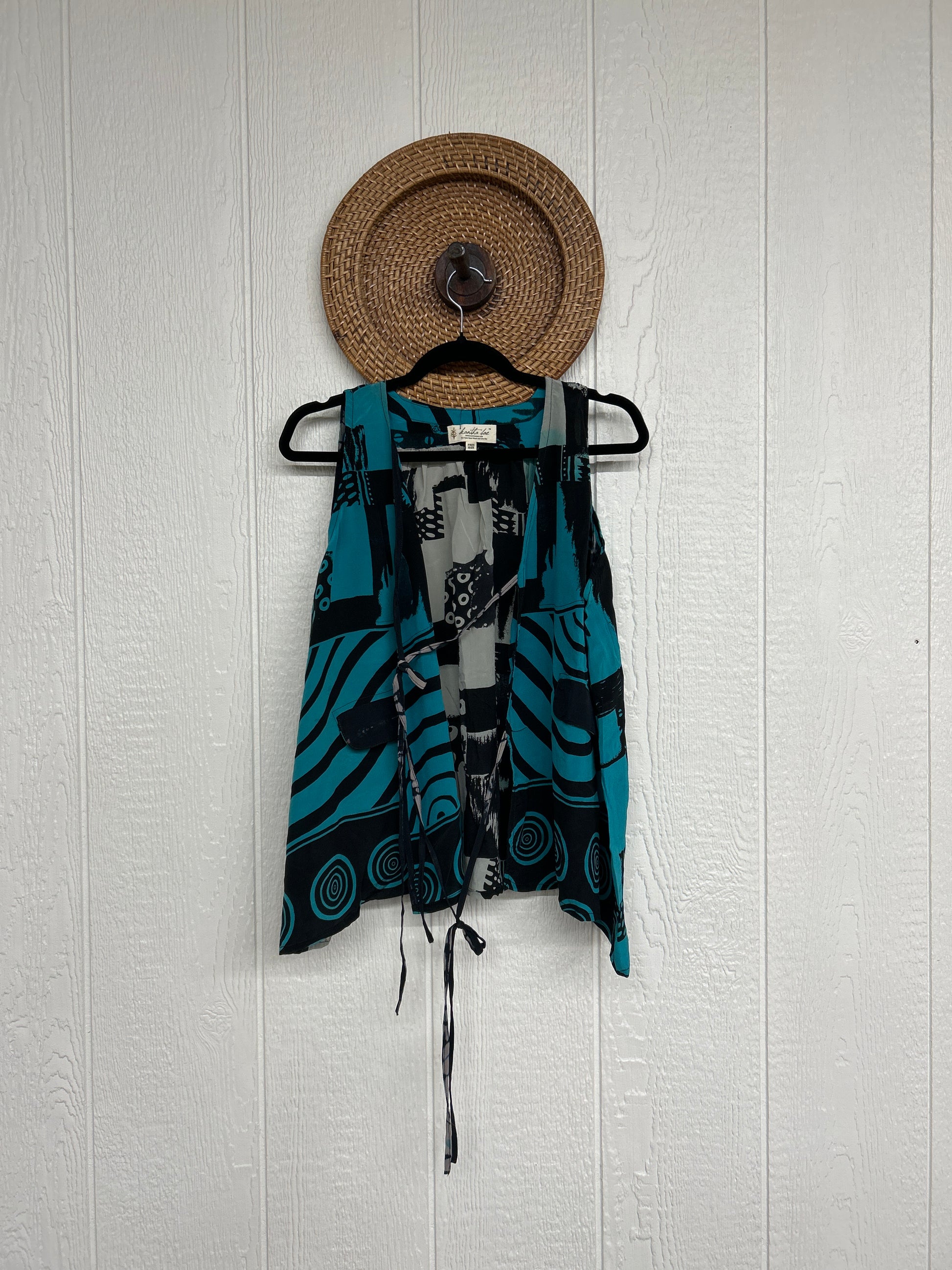 Crafted from our ultra lux crepe silk sari this dreamy completer piece features a vintage inspired floaty design with a double tie front closure and two pockets on the front panel.