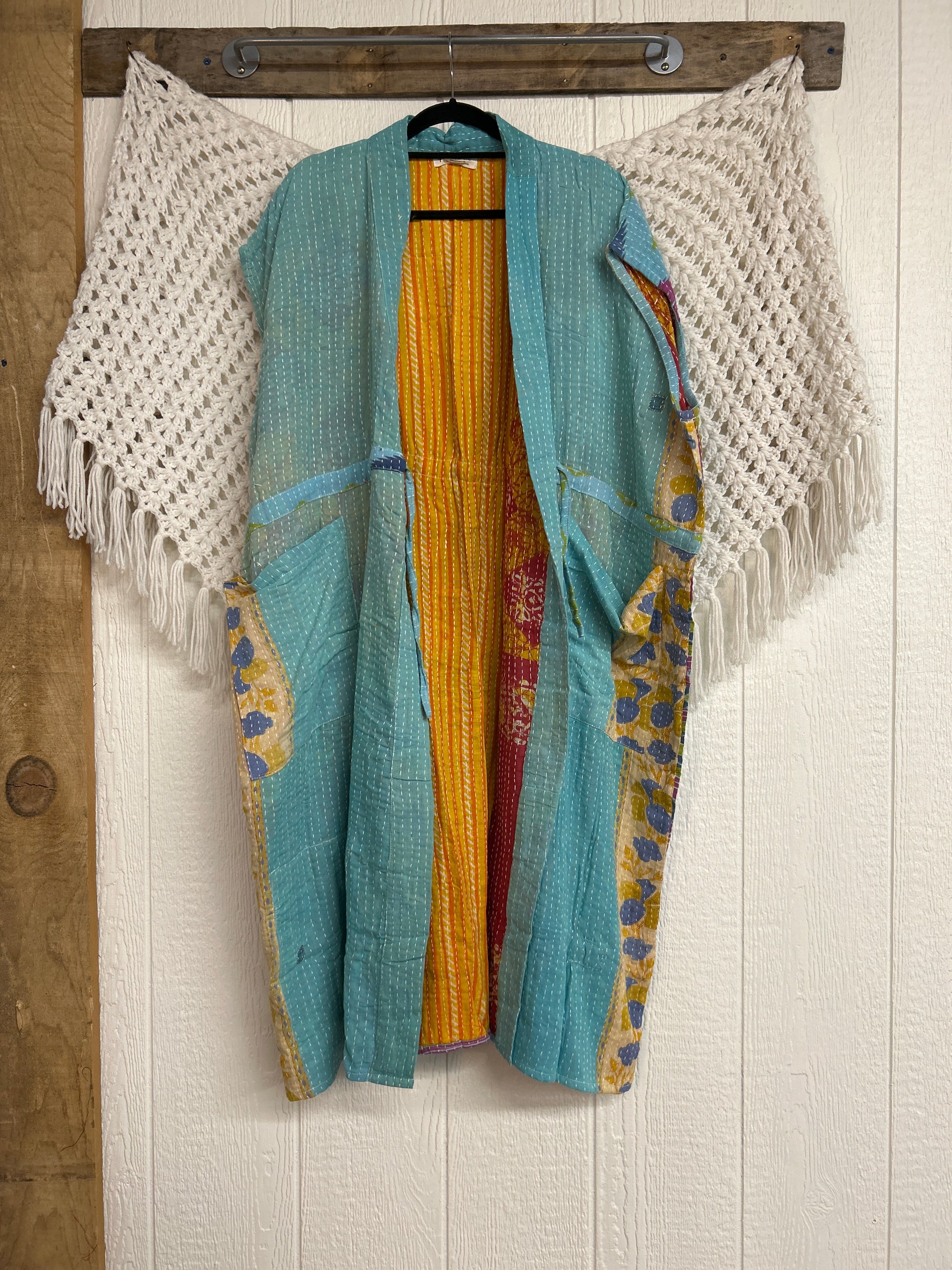 This groovy statement piece is crafted from our ultra lux kantha stitch vintage cotton sari.