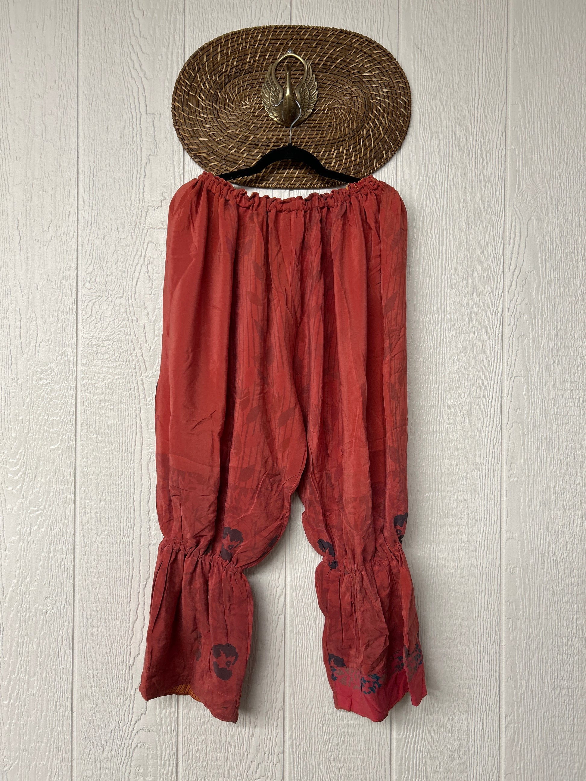 Crafted from vintage double crepe sari, these chic sari bloomers are reversible, featuring two big exterior pockets and interior pockets making them fully reversible. The waistband is magic and elastic featuring a drawstring for ultimate versatility.