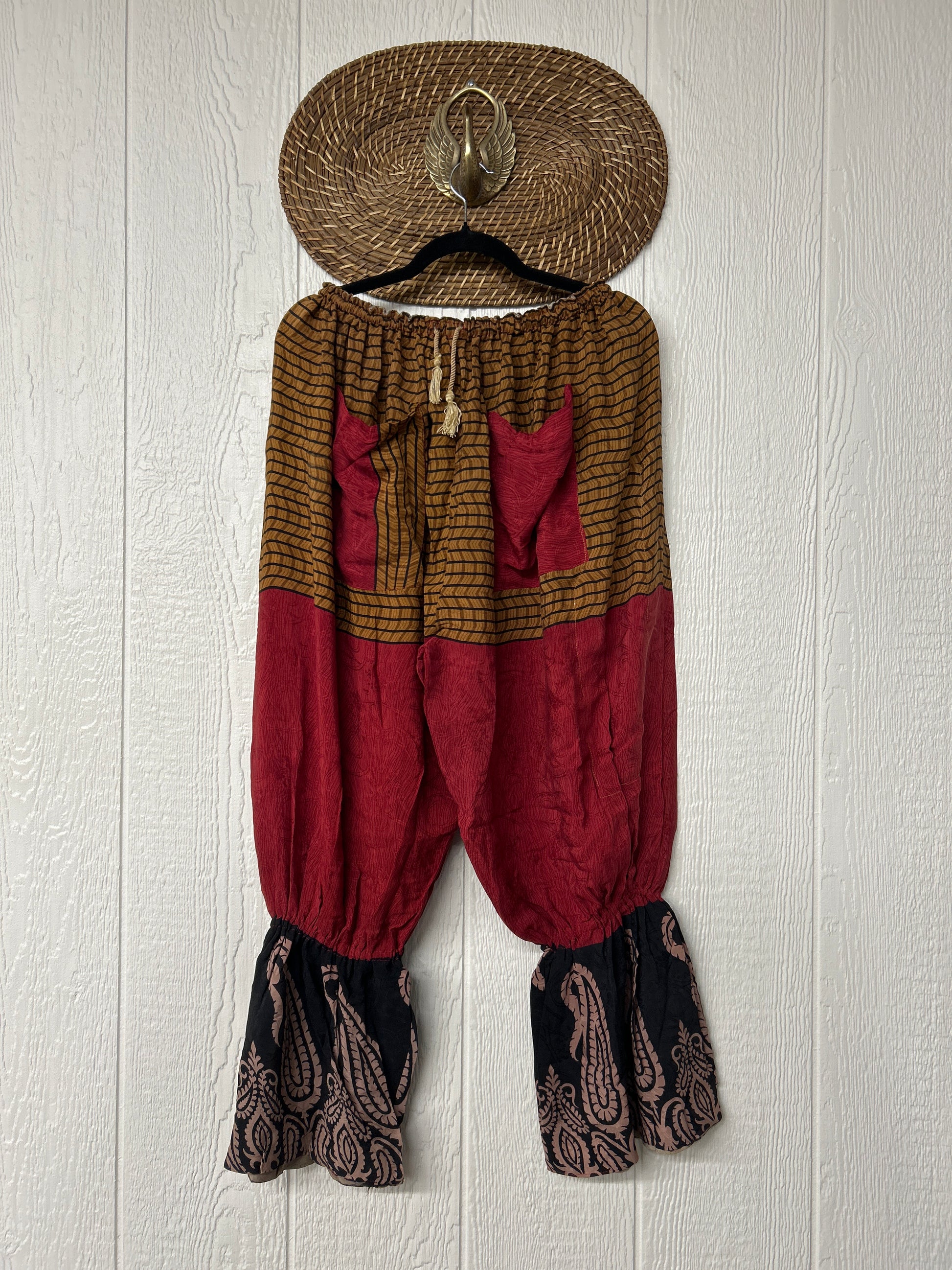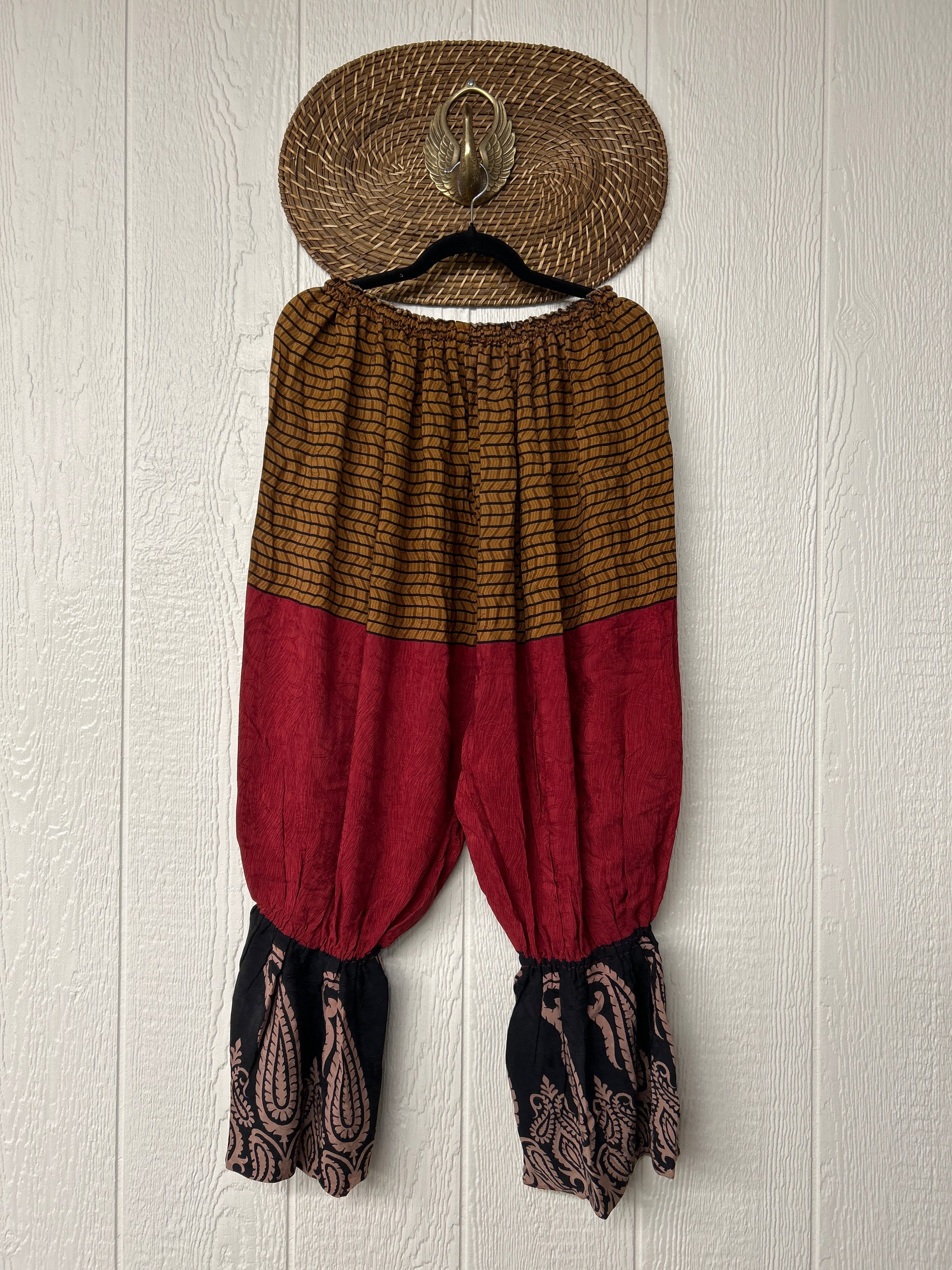 Crafted from vintage double crepe sari, these chic sari bloomers are reversible, featuring two big exterior pockets and interior pockets making them fully reversible. The waistband is magic and elastic featuring a drawstring for ultimate versatility.