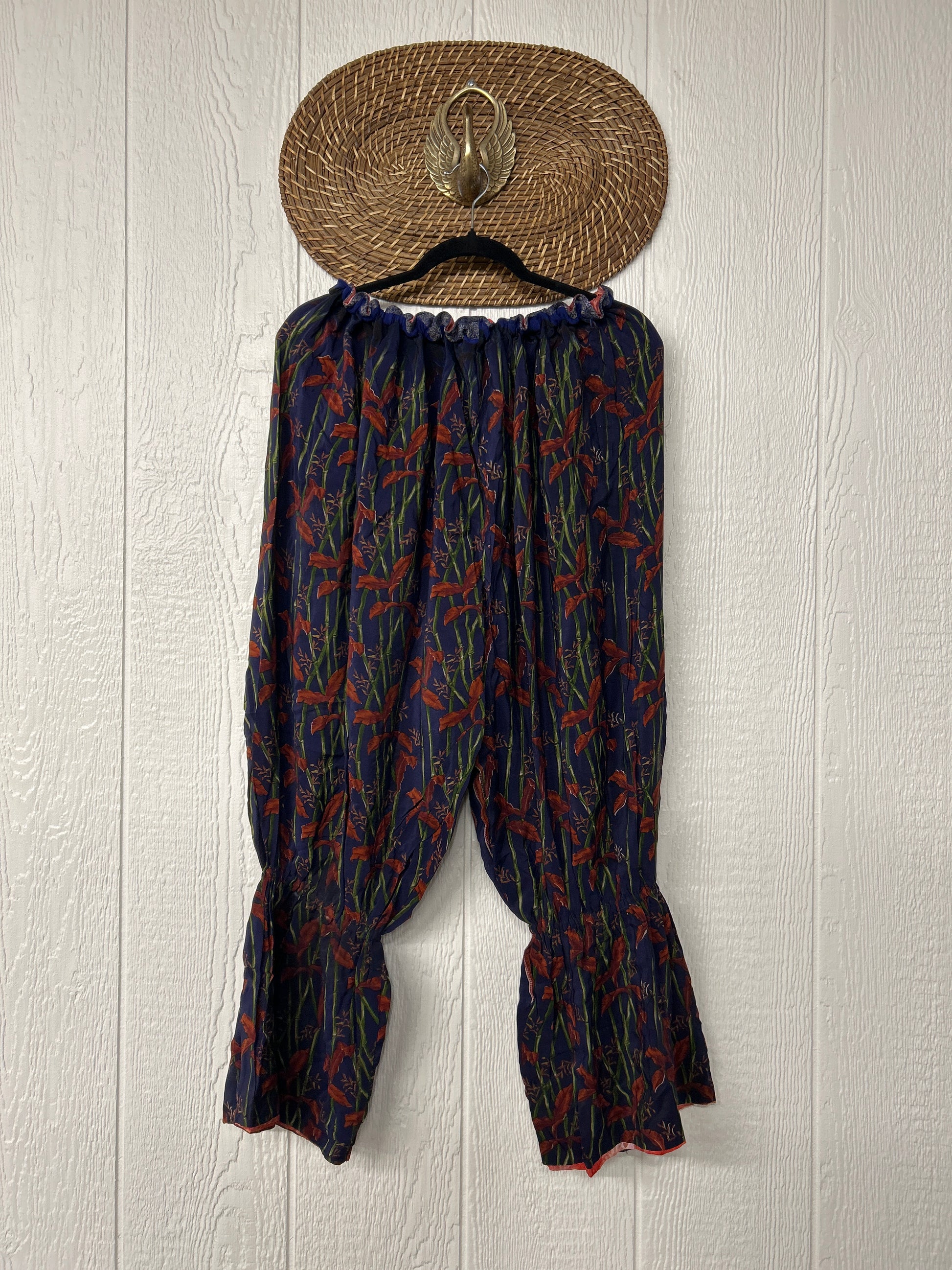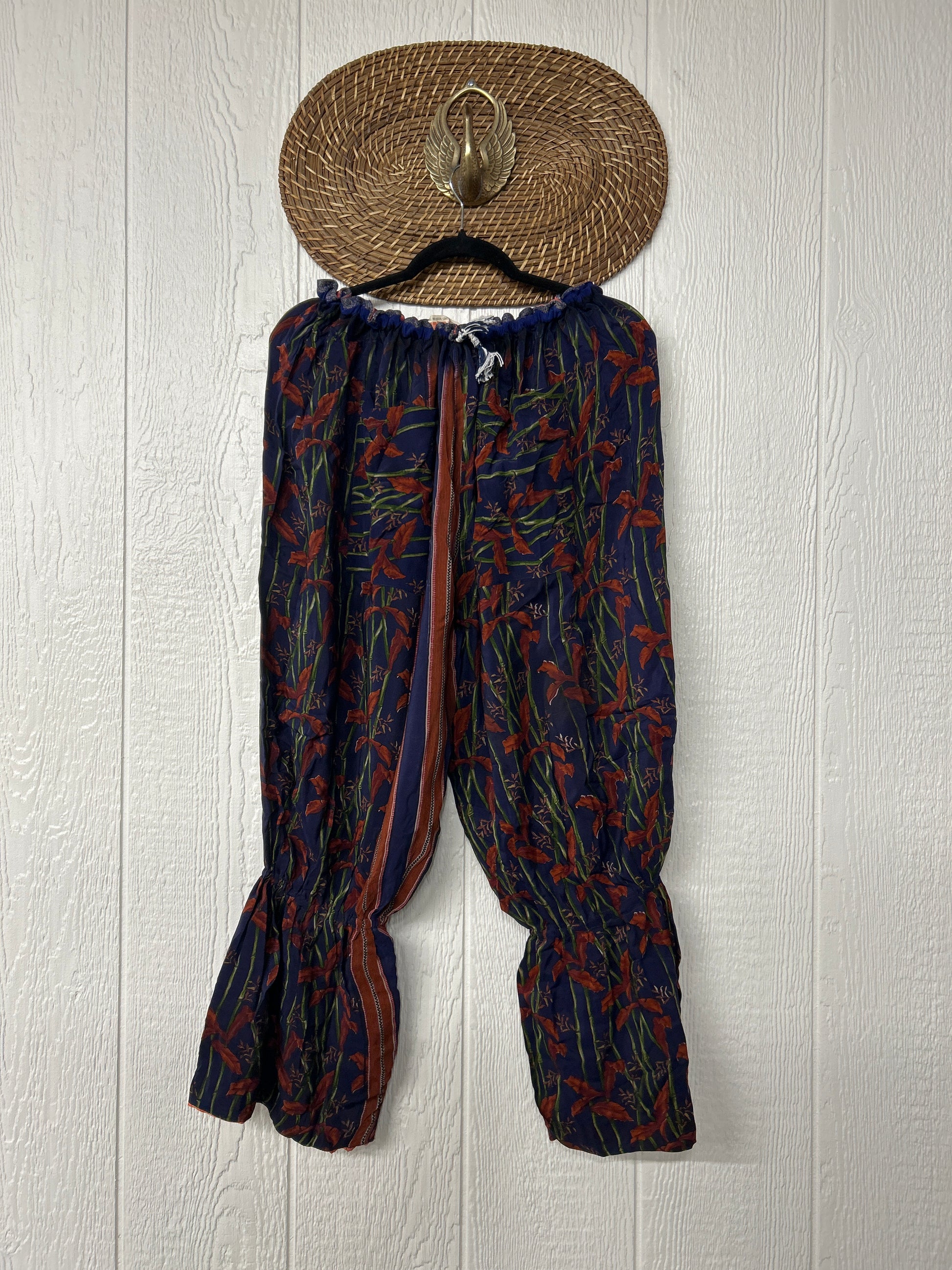 Crafted from vintage double crepe sari, these chic sari bloomers are reversible, featuring two big exterior pockets and interior pockets making them fully reversible. The waistband is magic and elastic featuring a drawstring for ultimate versatility.