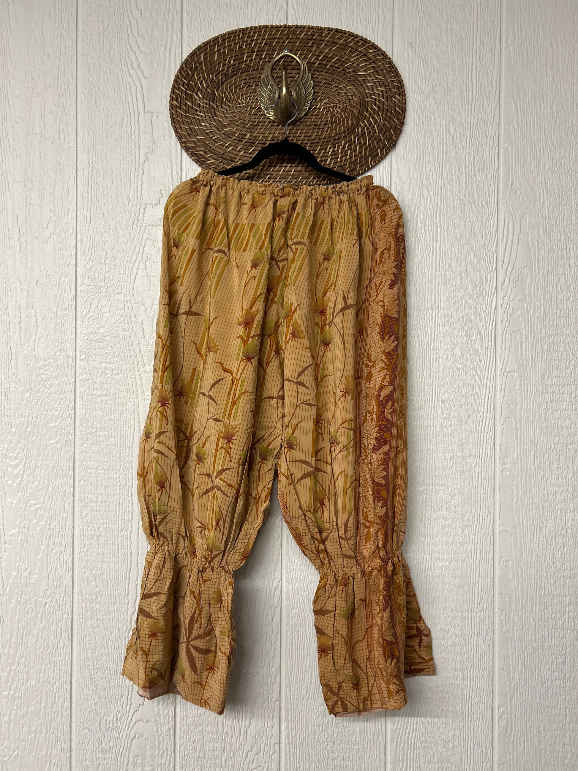 Crafted from vintage double crepe sari, these chic sari bloomers are reversible, featuring two big exterior pockets and interior pockets making them fully reversible. The waistband is magic and elastic featuring a drawstring for ultimate versatility.