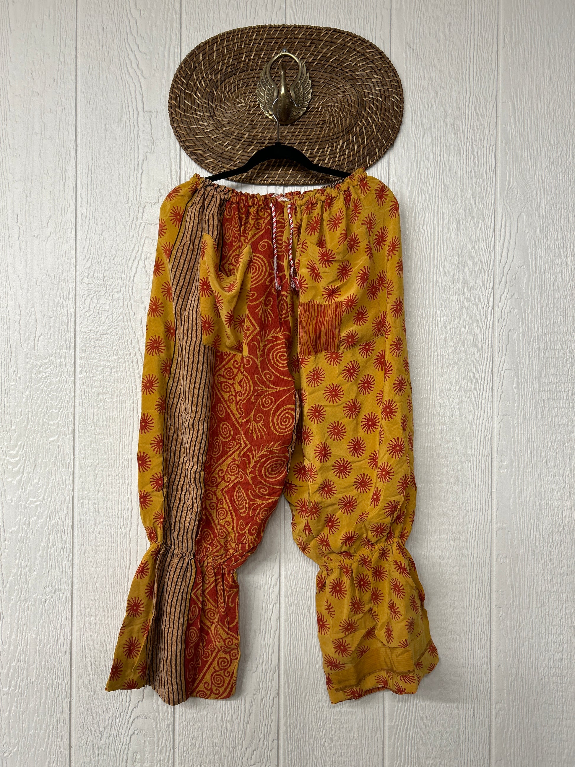 Crafted from vintage double crepe sari, these chic sari bloomers are reversible, featuring two big exterior pockets and interior pockets making them fully reversible. The waistband is magic and elastic featuring a drawstring for ultimate versatility.