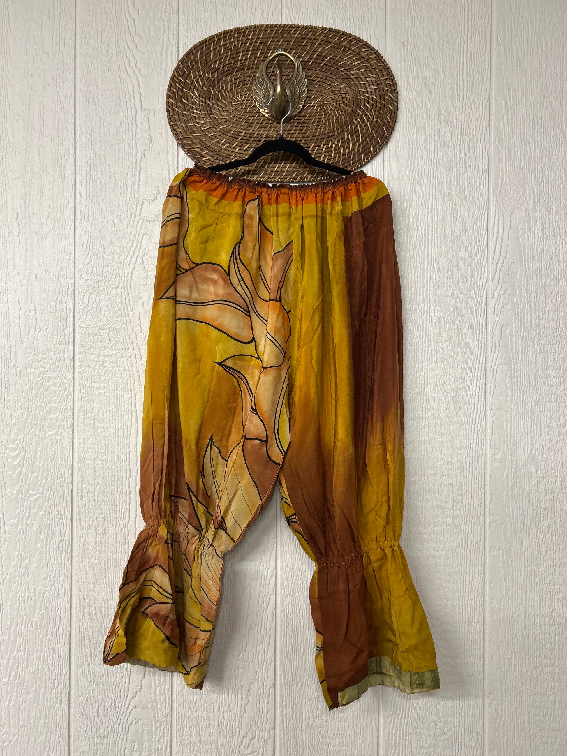 Crafted from vintage double crepe sari, these chic sari bloomers are reversible, featuring two big exterior pockets and interior pockets making them fully reversible. The waistband is magic and elastic featuring a drawstring for ultimate versatility.