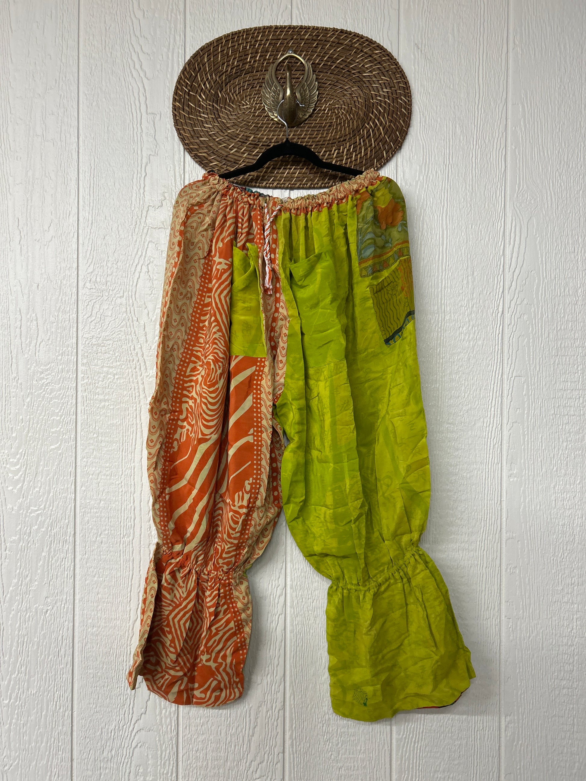 Crafted from vintage double crepe sari, these chic sari bloomers are reversible, featuring two big exterior pockets and interior pockets making them fully reversible. The waistband is magic and elastic featuring a drawstring for ultimate versatility.