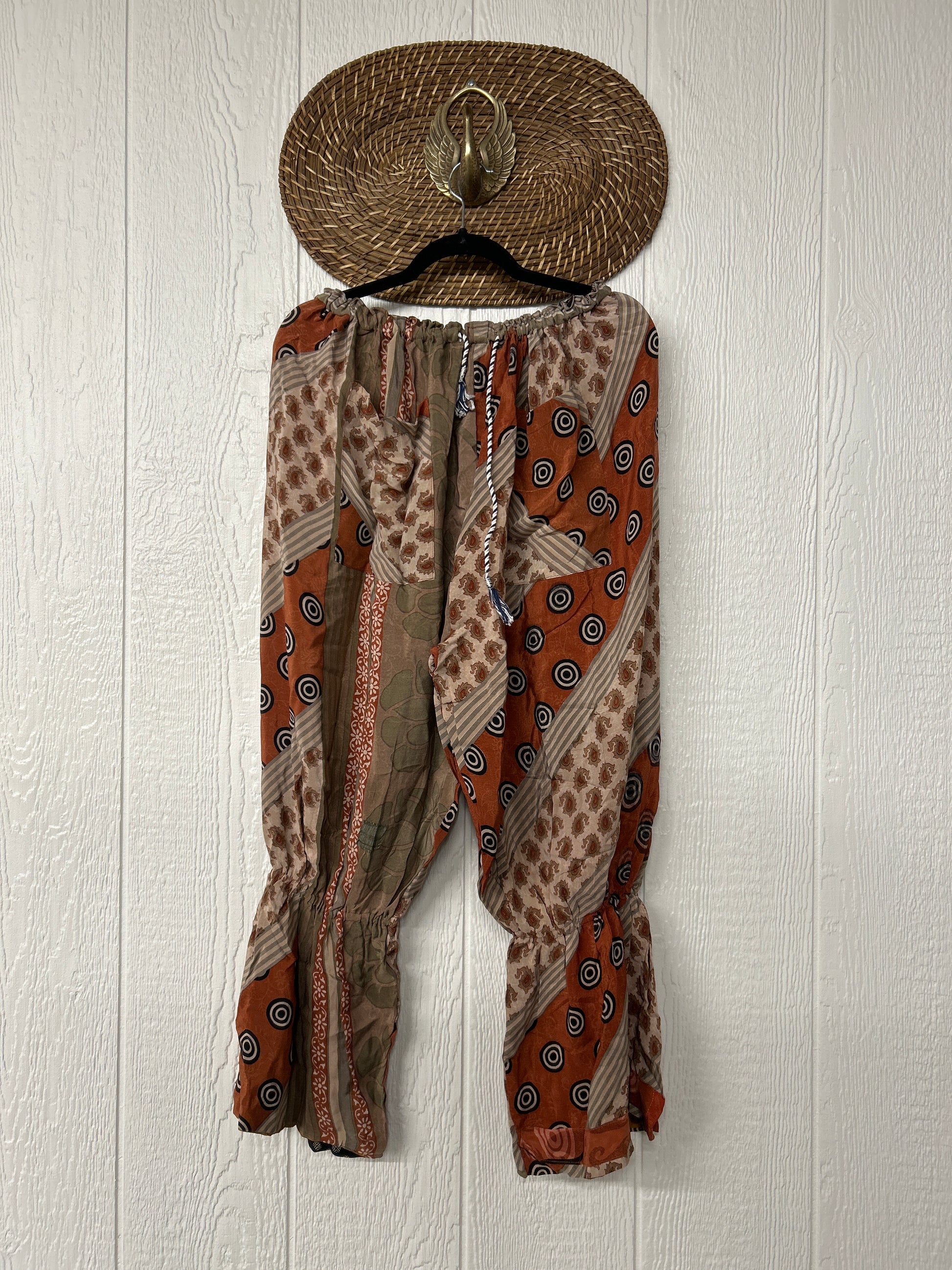Crafted from vintage double crepe sari, these chic sari bloomers are reversible, featuring two big exterior pockets and interior pockets making them fully reversible. The waistband is magic and elastic featuring a drawstring for ultimate versatility.
