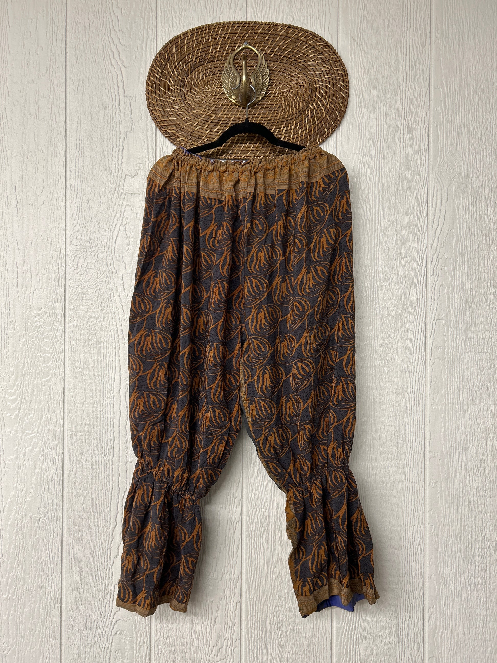 Crafted from vintage double crepe sari, these chic sari bloomers are reversible, featuring two big exterior pockets and interior pockets making them fully reversible. The waistband is magic and elastic featuring a drawstring for ultimate versatility.
