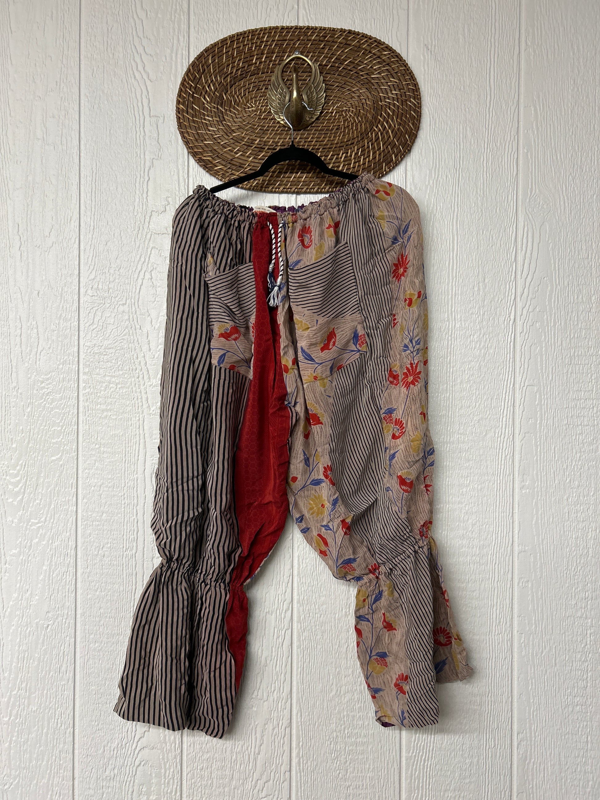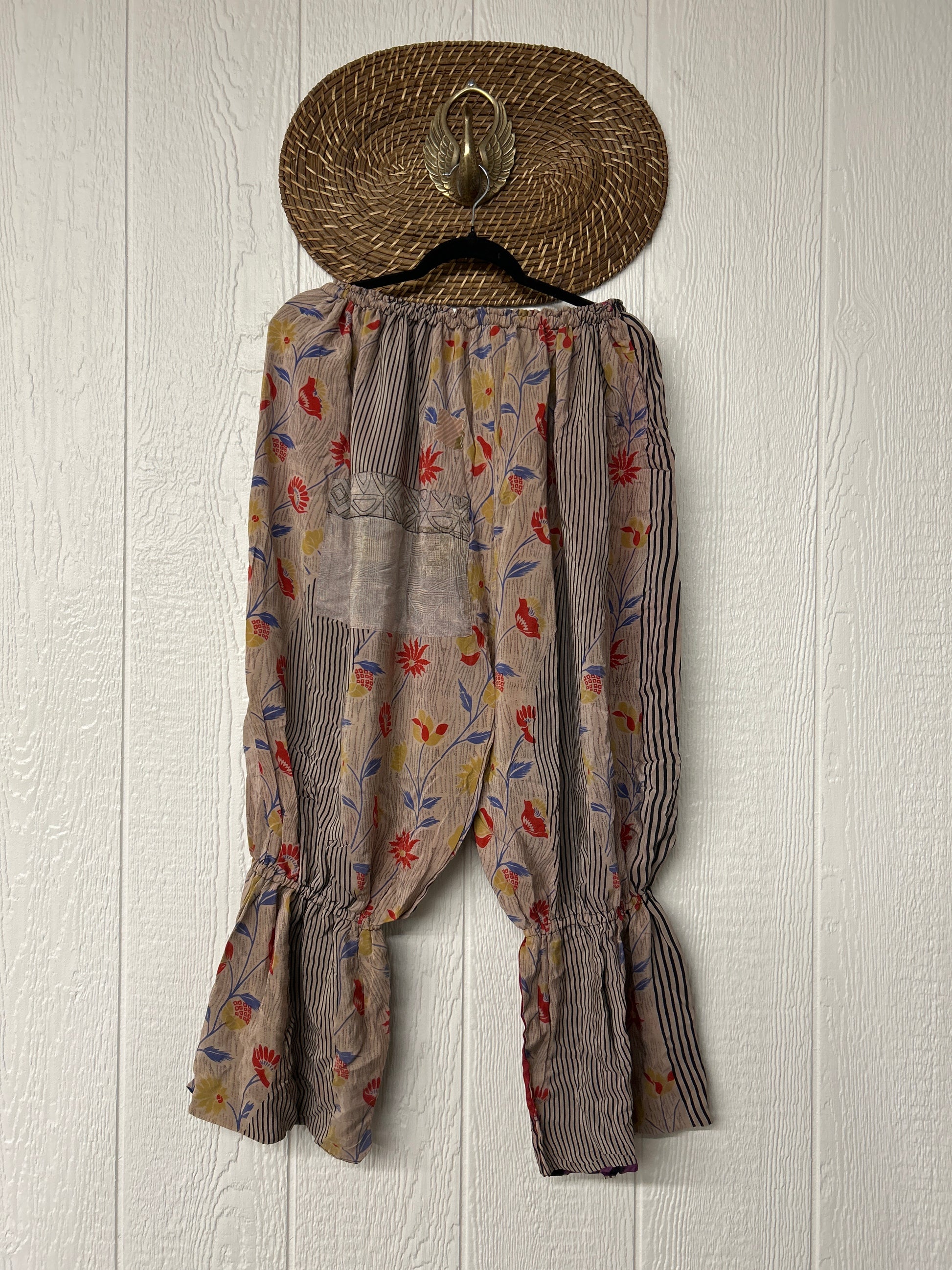 Crafted from vintage double crepe sari, these chic sari bloomers are reversible, featuring two big exterior pockets and interior pockets making them fully reversible. The waistband is magic and elastic featuring a drawstring for ultimate versatility.