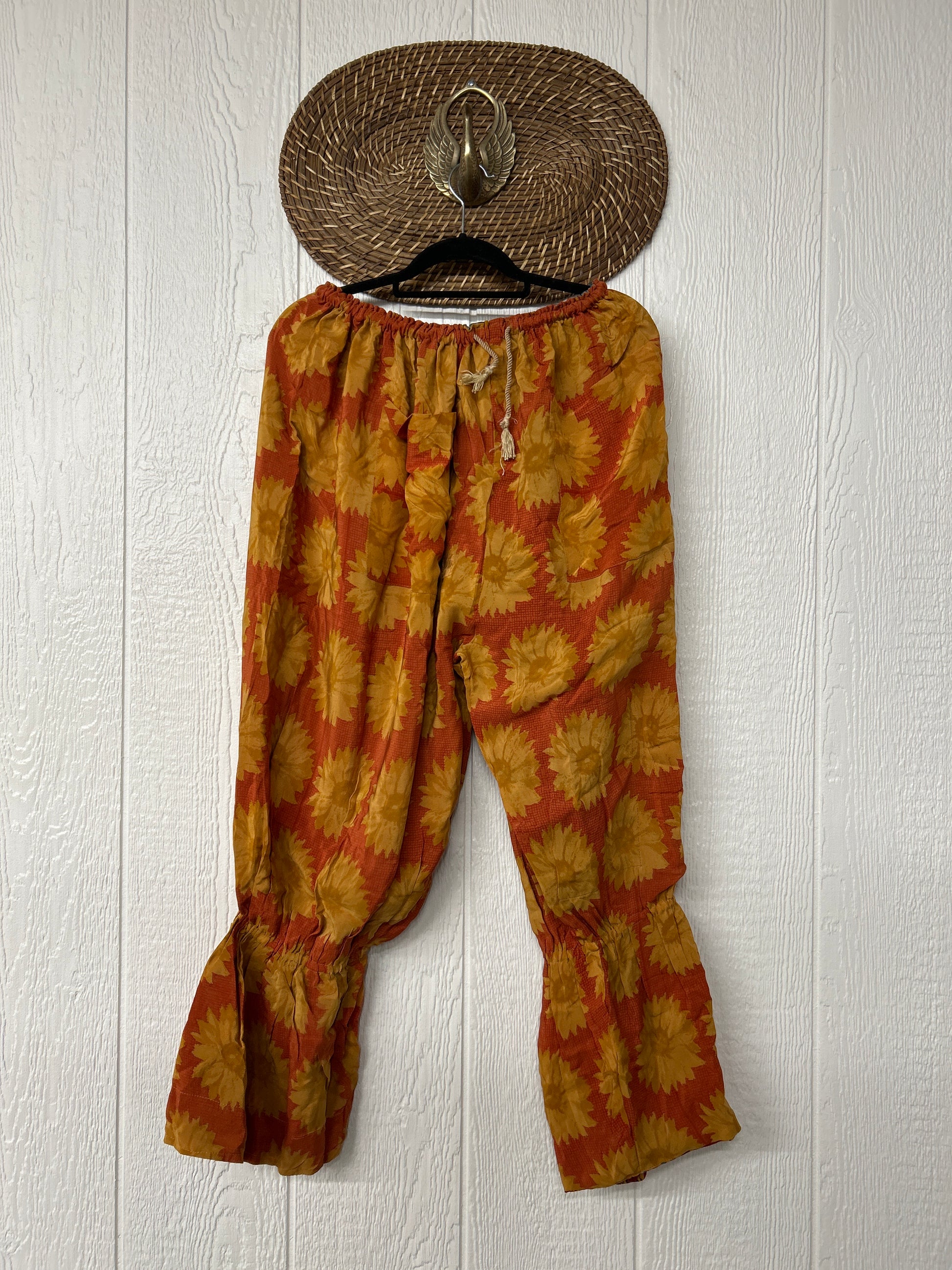 Crafted from vintage double crepe sari, these chic sari bloomers are reversible, featuring two big exterior pockets and interior pockets making them fully reversible. The waistband is magic and elastic featuring a drawstring for ultimate versatility.