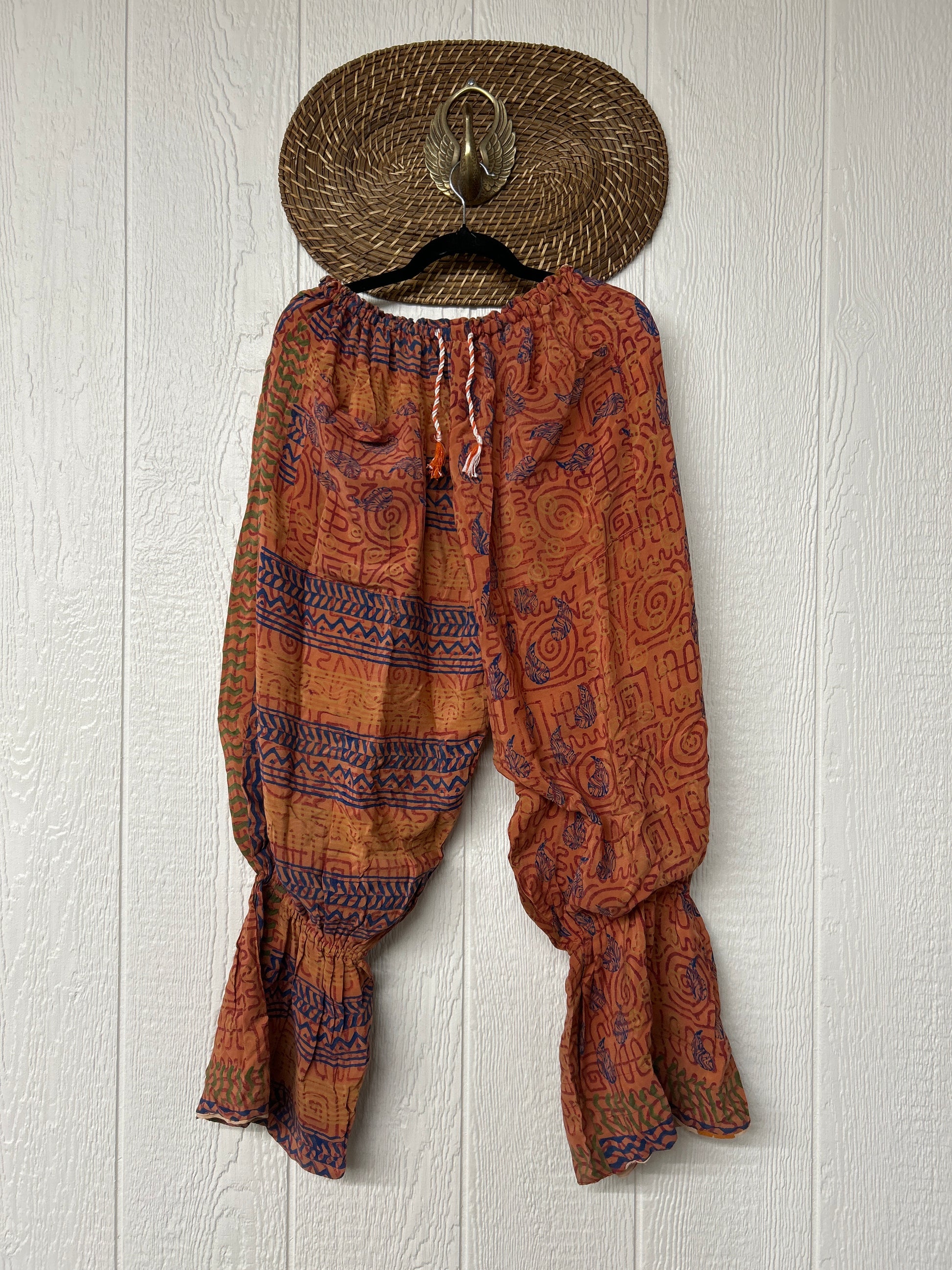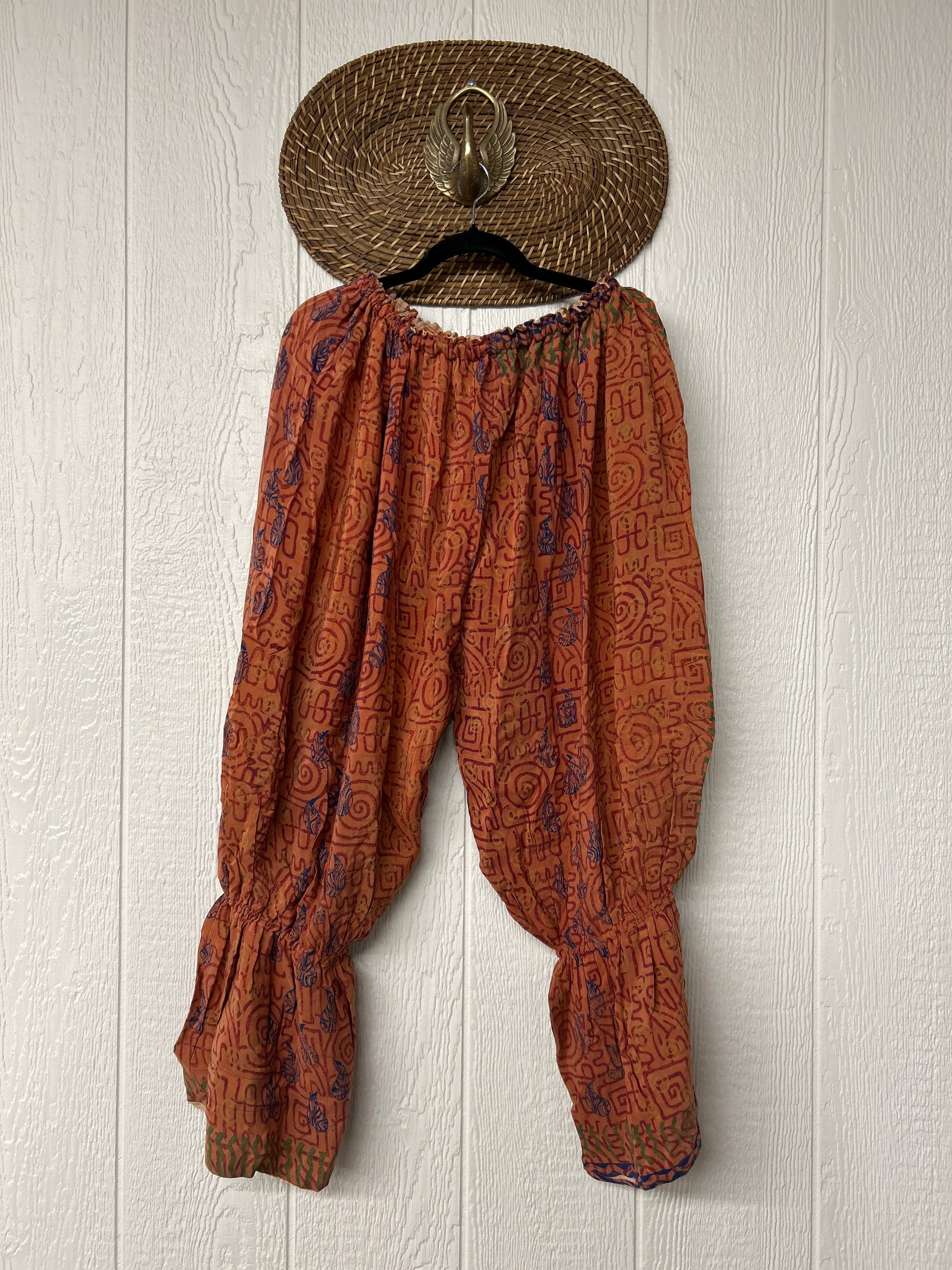 Crafted from vintage double crepe sari, these chic sari bloomers are reversible, featuring two big exterior pockets and interior pockets making them fully reversible. The waistband is magic and elastic featuring a drawstring for ultimate versatility.