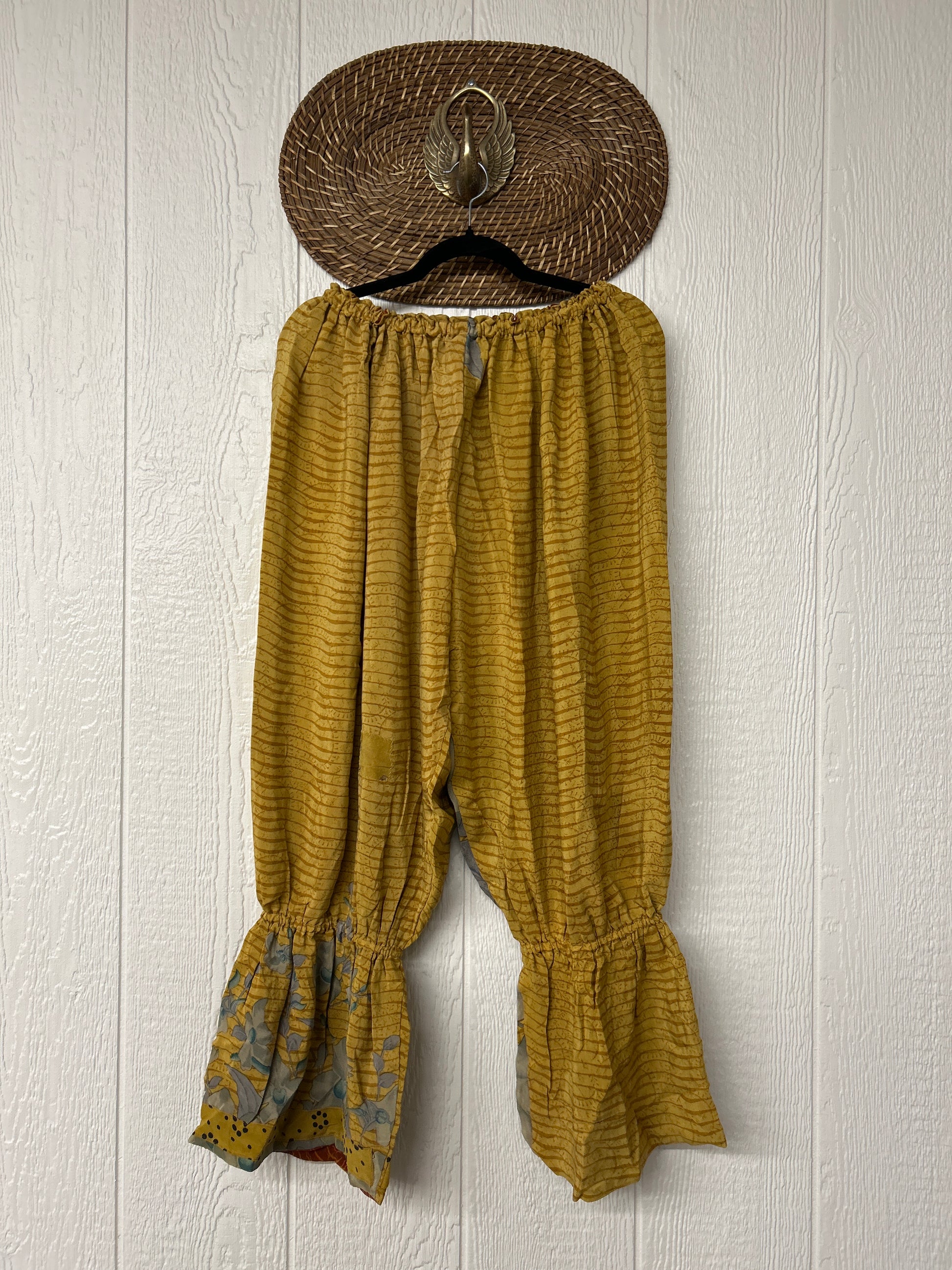 Crafted from vintage double crepe sari, these chic sari bloomers are reversible, featuring two big exterior pockets and interior pockets making them fully reversible. The waistband is magic and elastic featuring a drawstring for ultimate versatility.