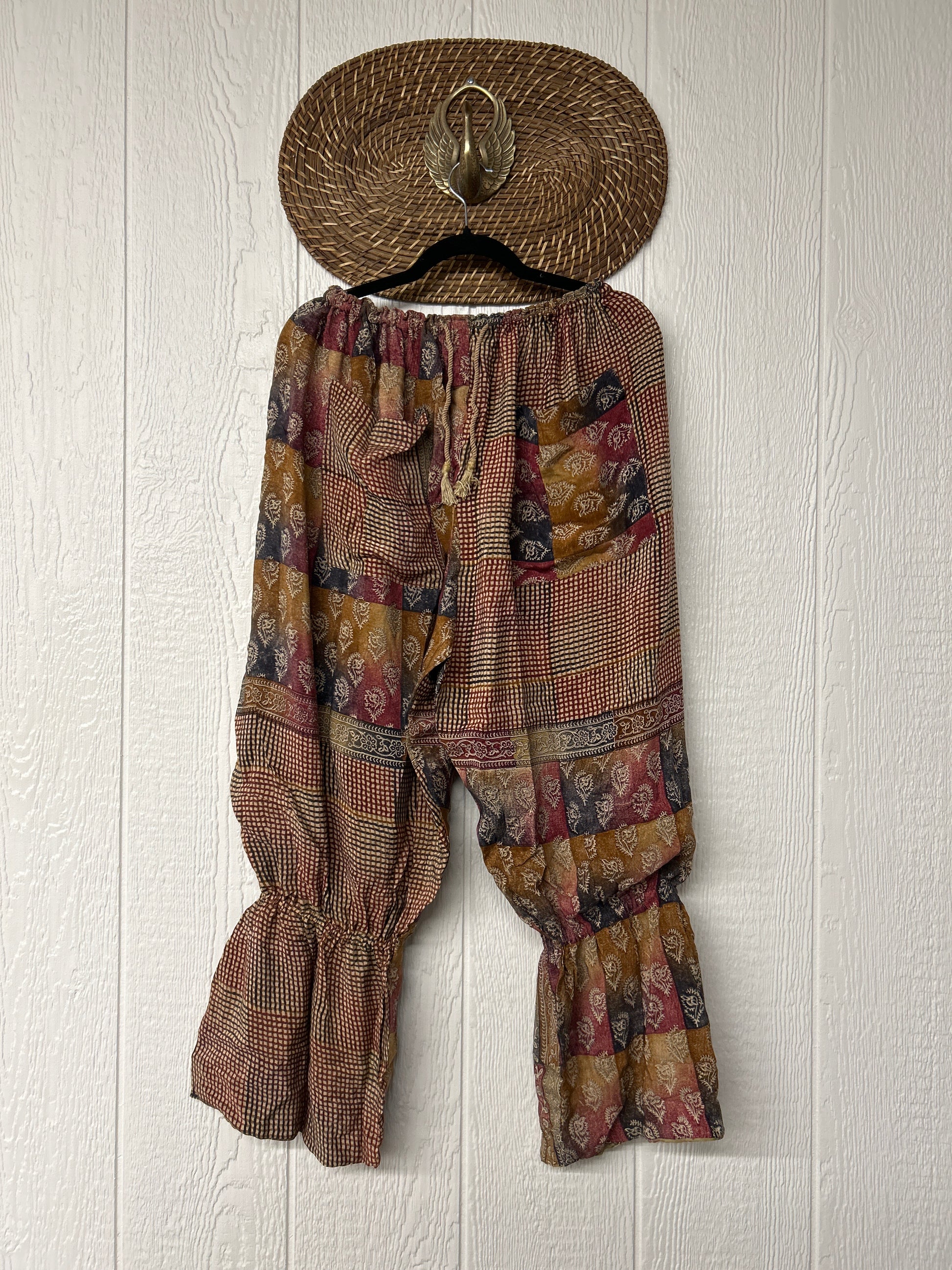 Crafted from vintage double crepe sari, these chic sari bloomers are reversible, featuring two big exterior pockets and interior pockets making them fully reversible. The waistband is magic and elastic featuring a drawstring for ultimate versatility.
