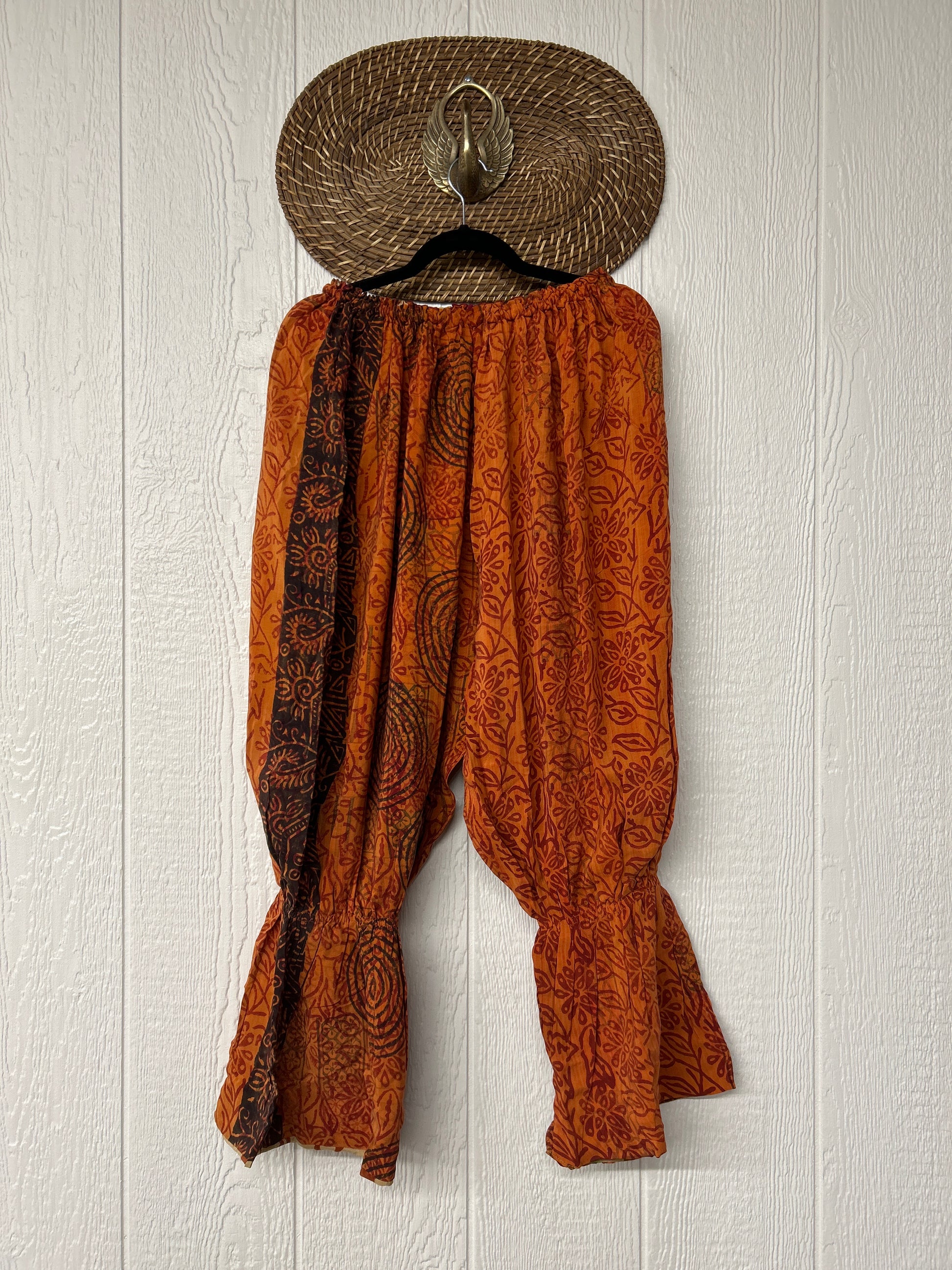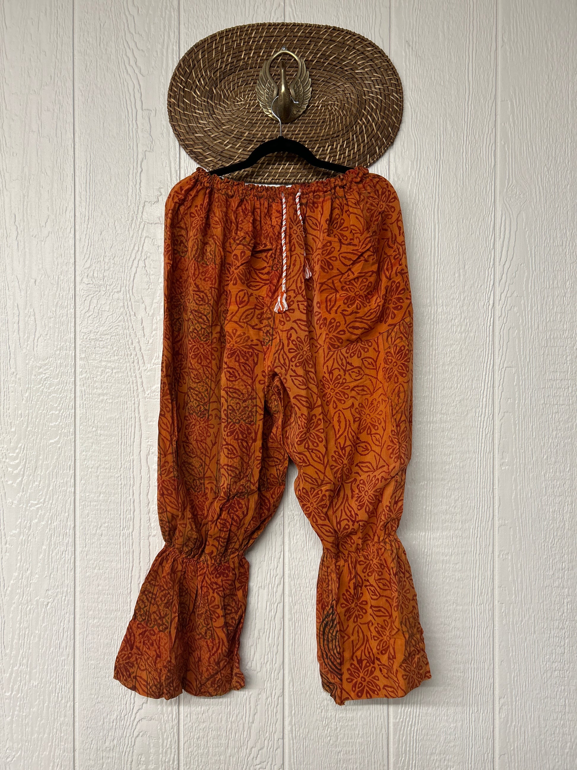 Crafted from vintage double crepe sari, these chic sari bloomers are reversible, featuring two big exterior pockets and interior pockets making them fully reversible. The waistband is magic and elastic featuring a drawstring for ultimate versatility.