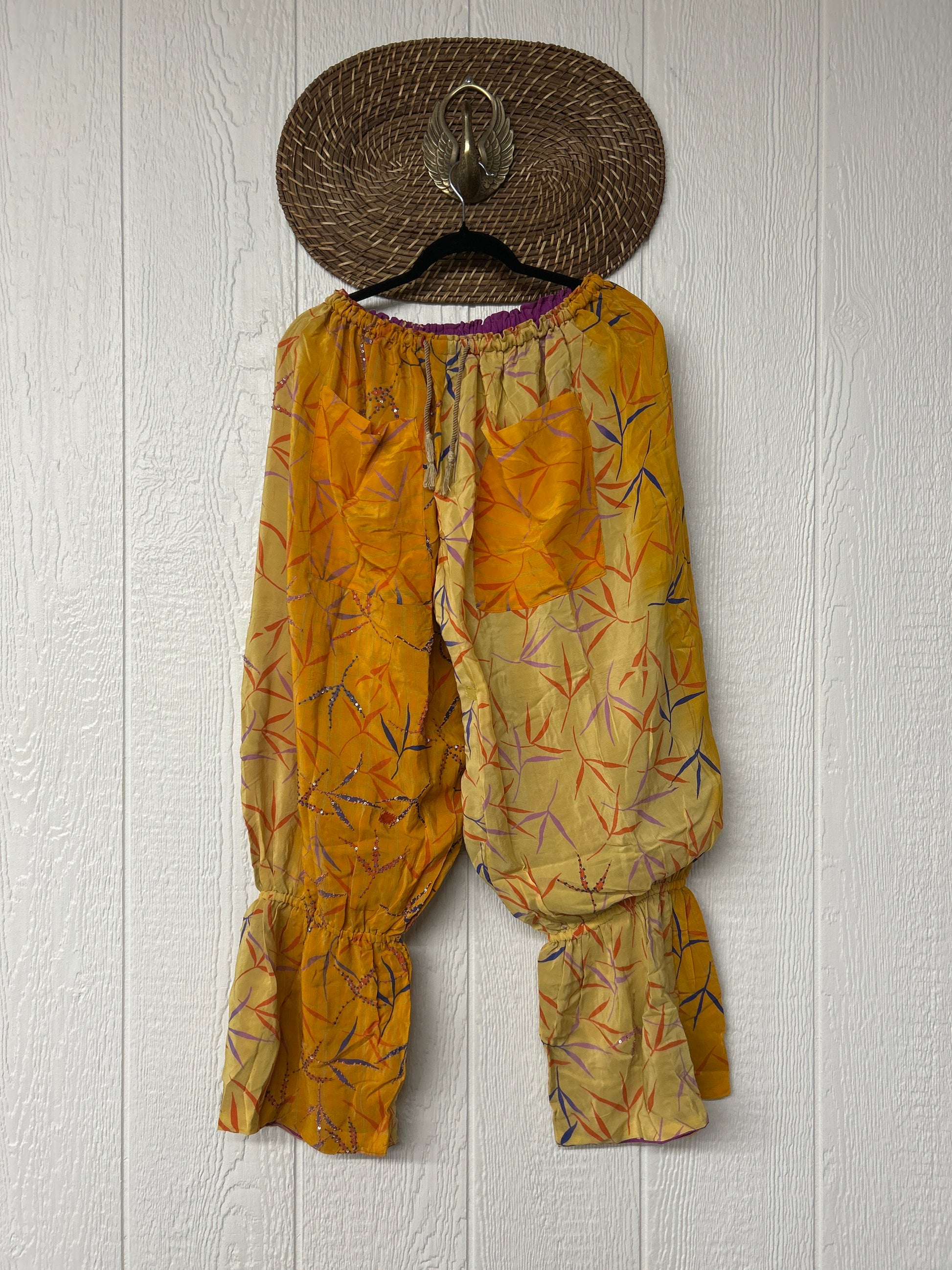 Crafted from vintage double crepe sari, these chic sari bloomers are reversible, featuring two big exterior pockets and interior pockets making them fully reversible. The waistband is magic and elastic featuring a drawstring for ultimate versatility.