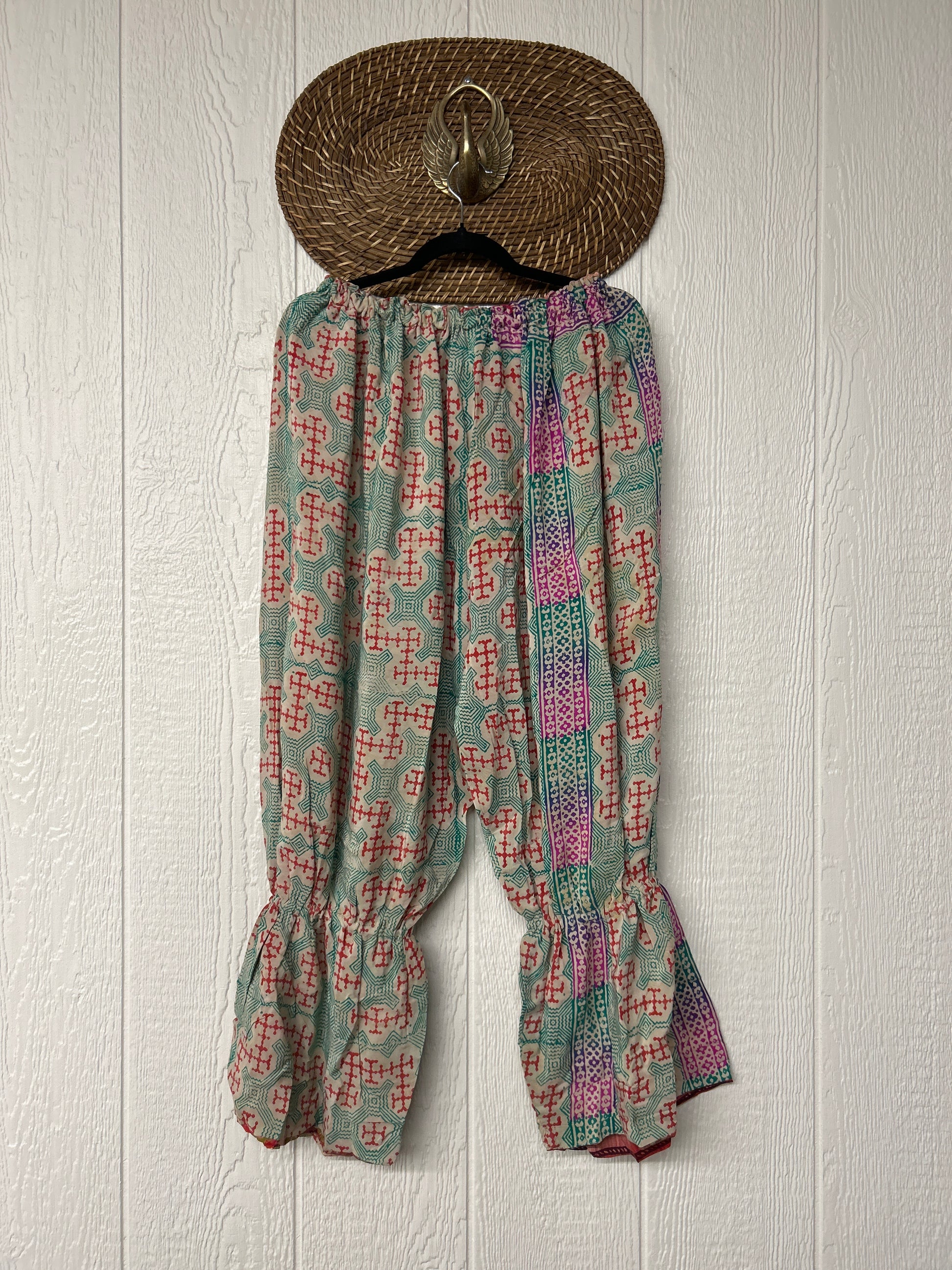 Crafted from vintage double crepe sari, these chic sari bloomers are reversible, featuring two big exterior pockets and interior pockets making them fully reversible. The waistband is magic and elastic featuring a drawstring for ultimate versatility.
