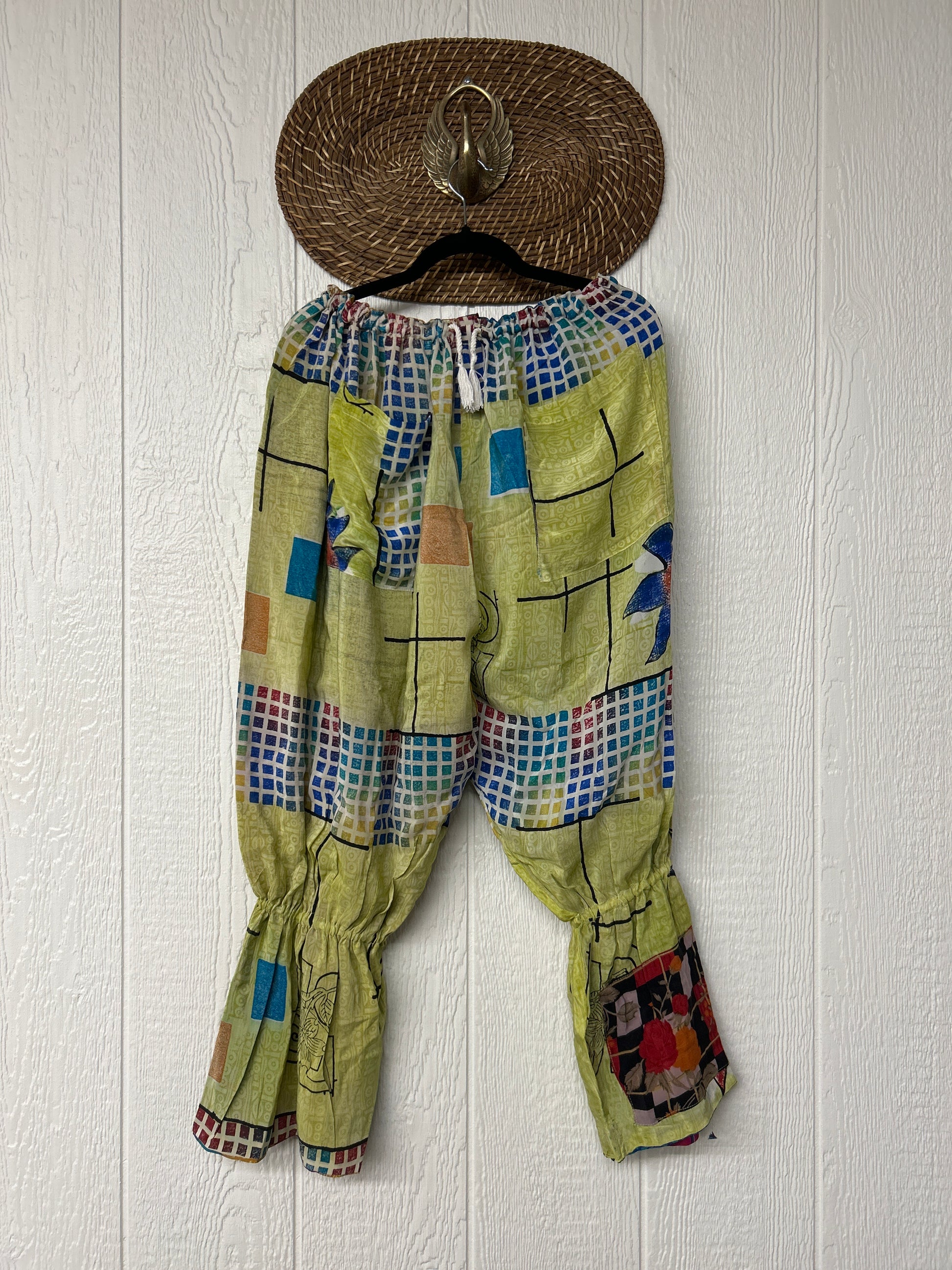 Crafted from vintage double crepe sari, these chic sari bloomers are reversible, featuring two big exterior pockets and interior pockets making them fully reversible. The waistband is magic and elastic featuring a drawstring for ultimate versatility.