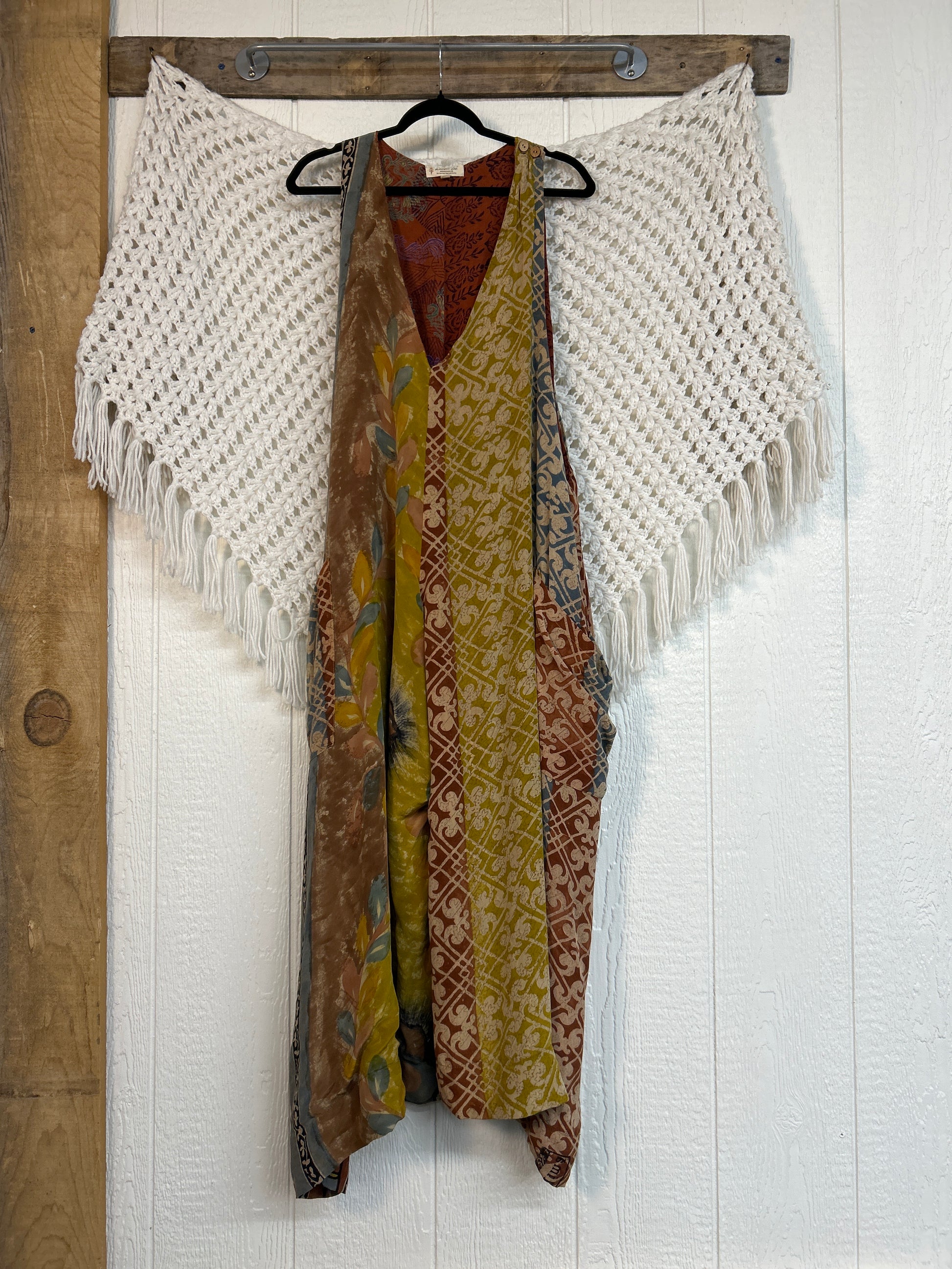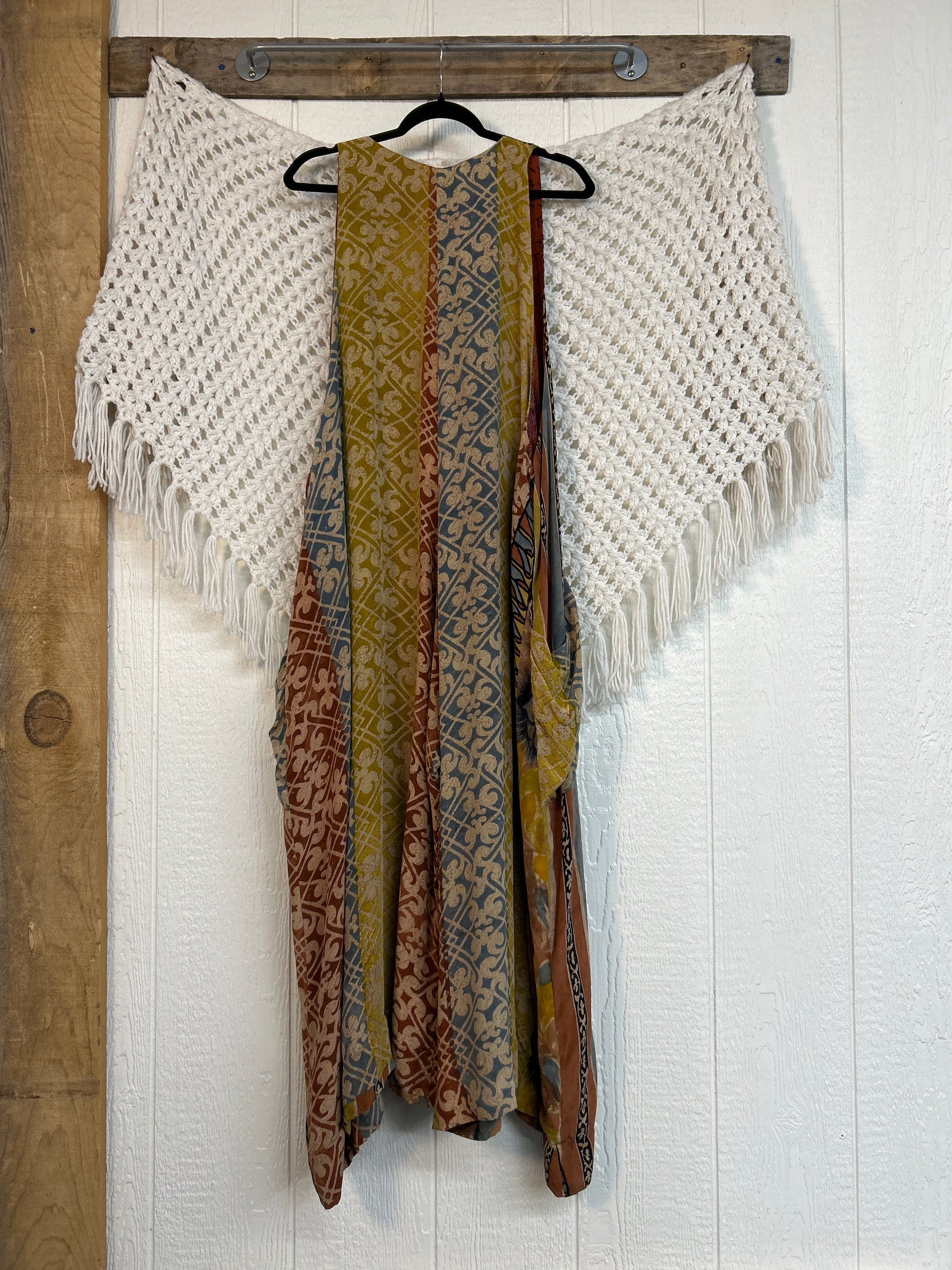 Disclosure: Our vintage styles have lived a full life before becoming the designs in our shop. Fabrics may have small threads or holes in the layers. Color inconsistency or small stains may be present. The saris are sewn together and extend the life of each design. Imperfections should be celebrated.