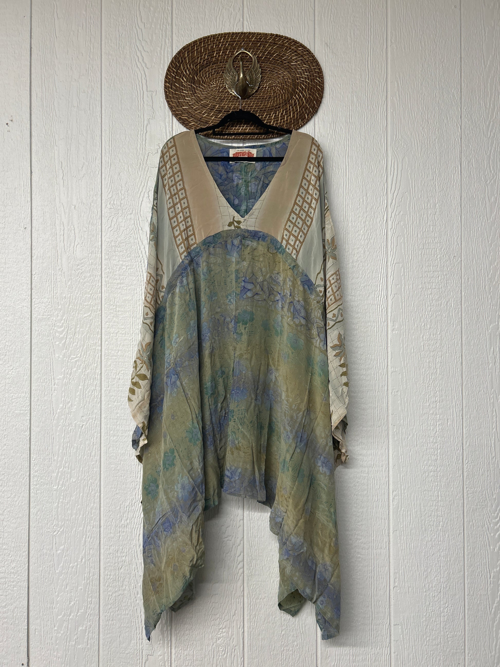 Fabrics may have small threads or holes in the layers. Color inconsistency or small stains may be present. The saris are sewn together and extend the life of each design.