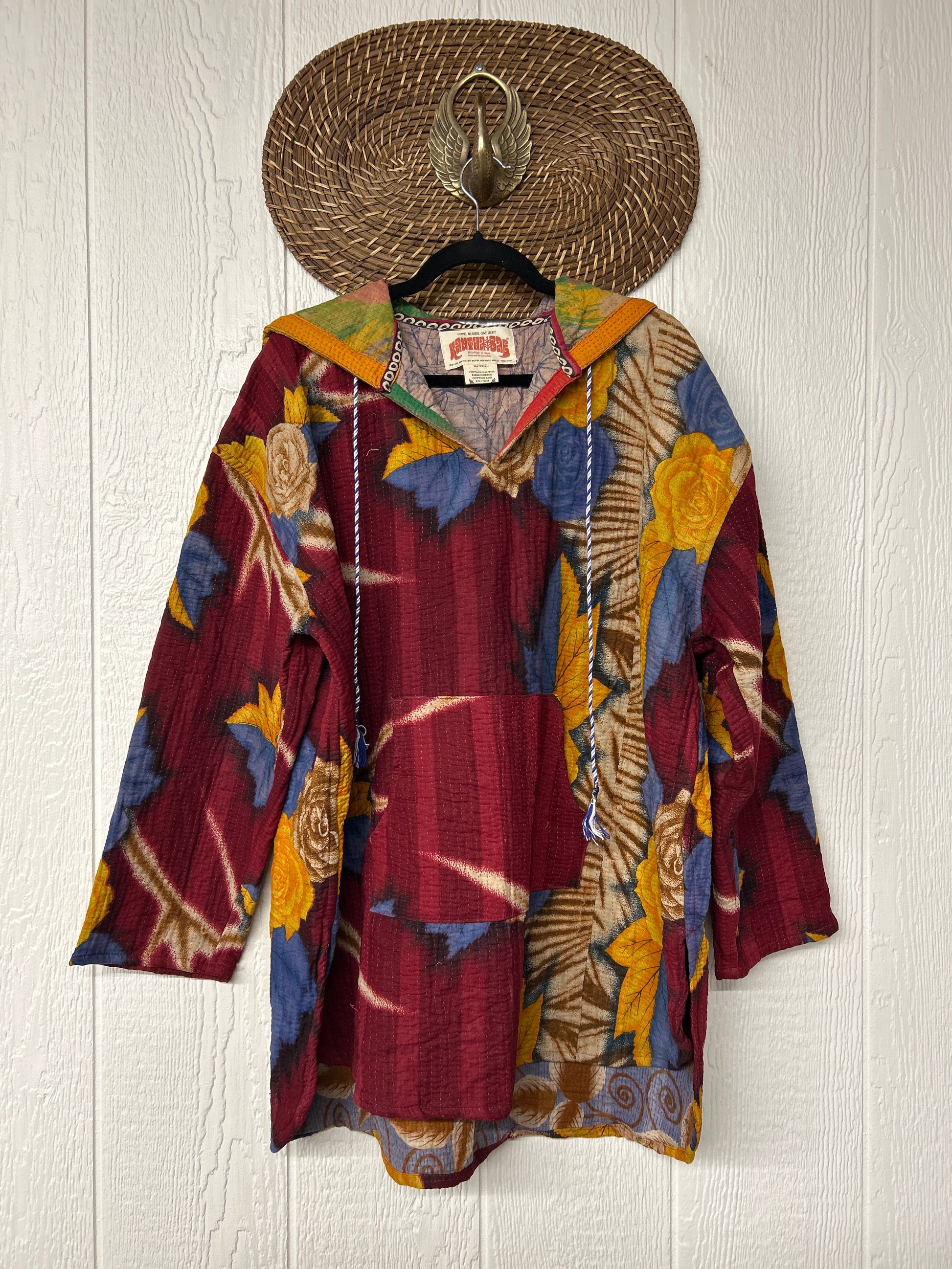 Made from our ultra lux fine Kantha stitch cotton sari these hoodies feature