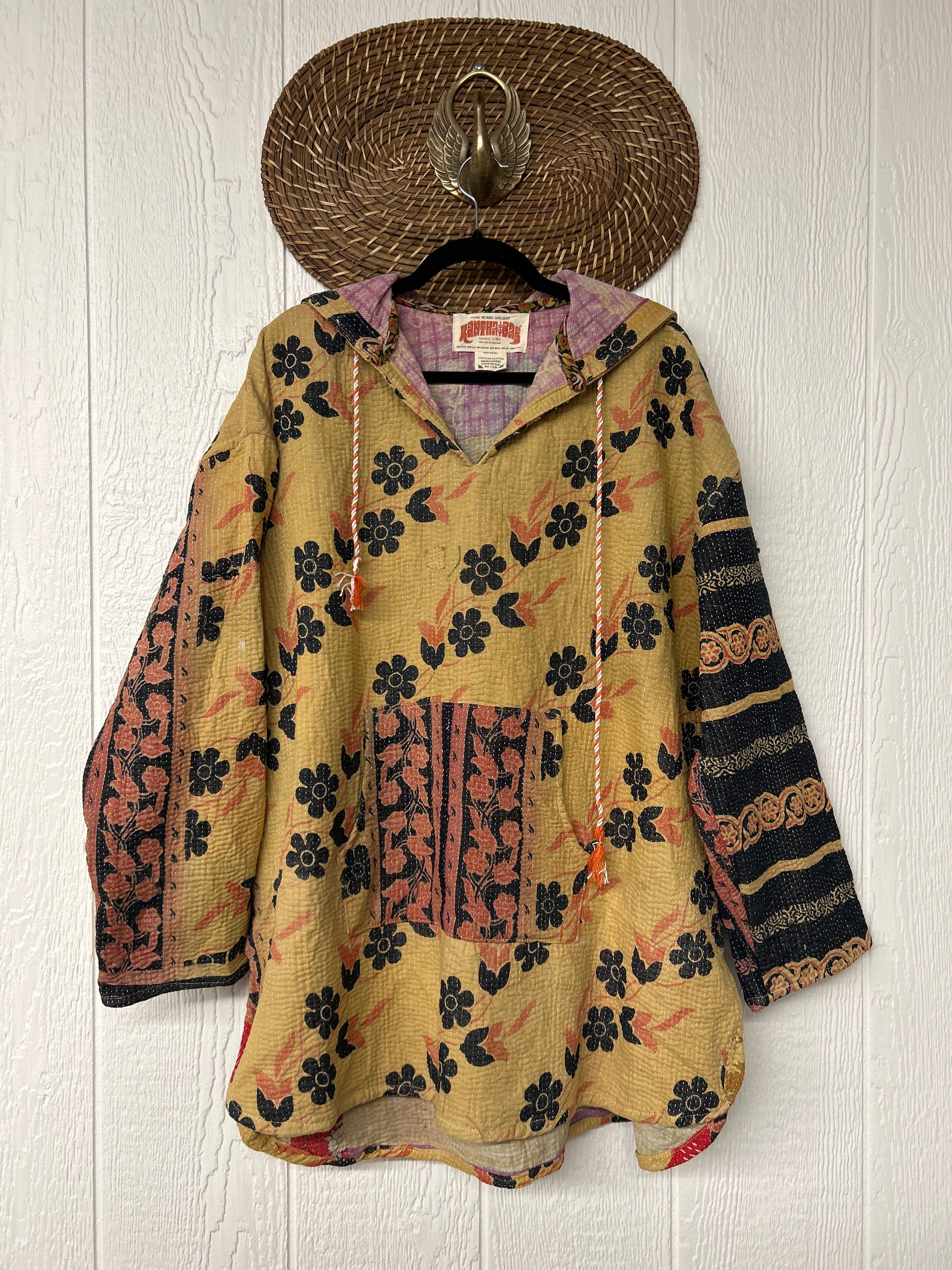 Made from our ultra lux fine Kantha stitch cotton sari these hoodies feature