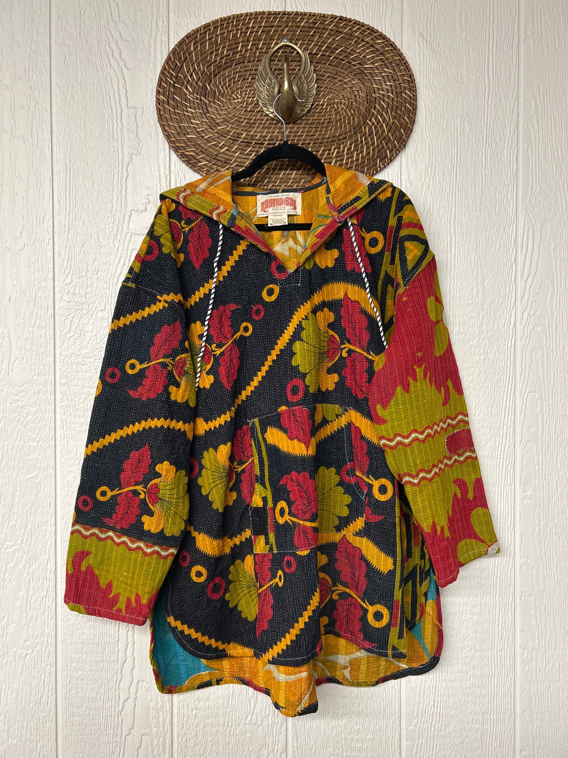 Made from our ultra lux fine Kantha stitch cotton sari these hoodies feature