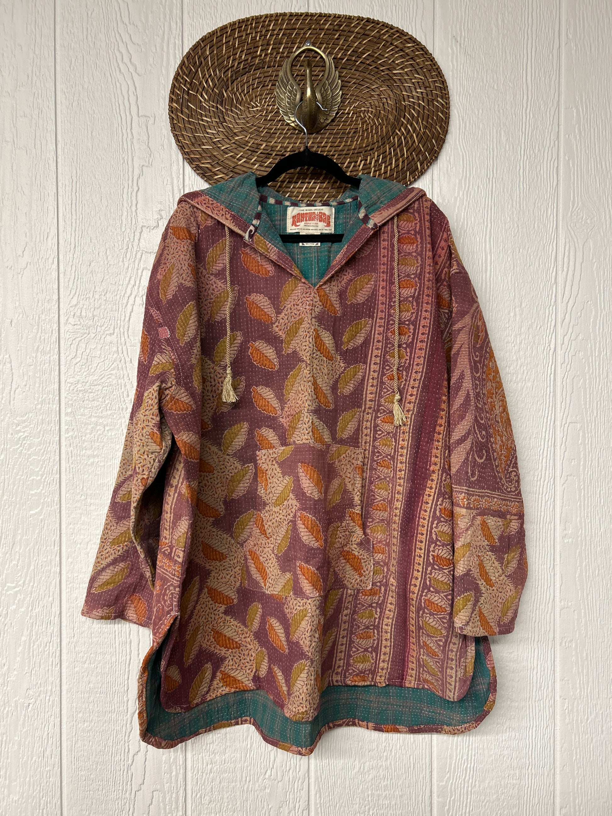 Made from our ultra lux fine Kantha stitch cotton sari these hoodies feature