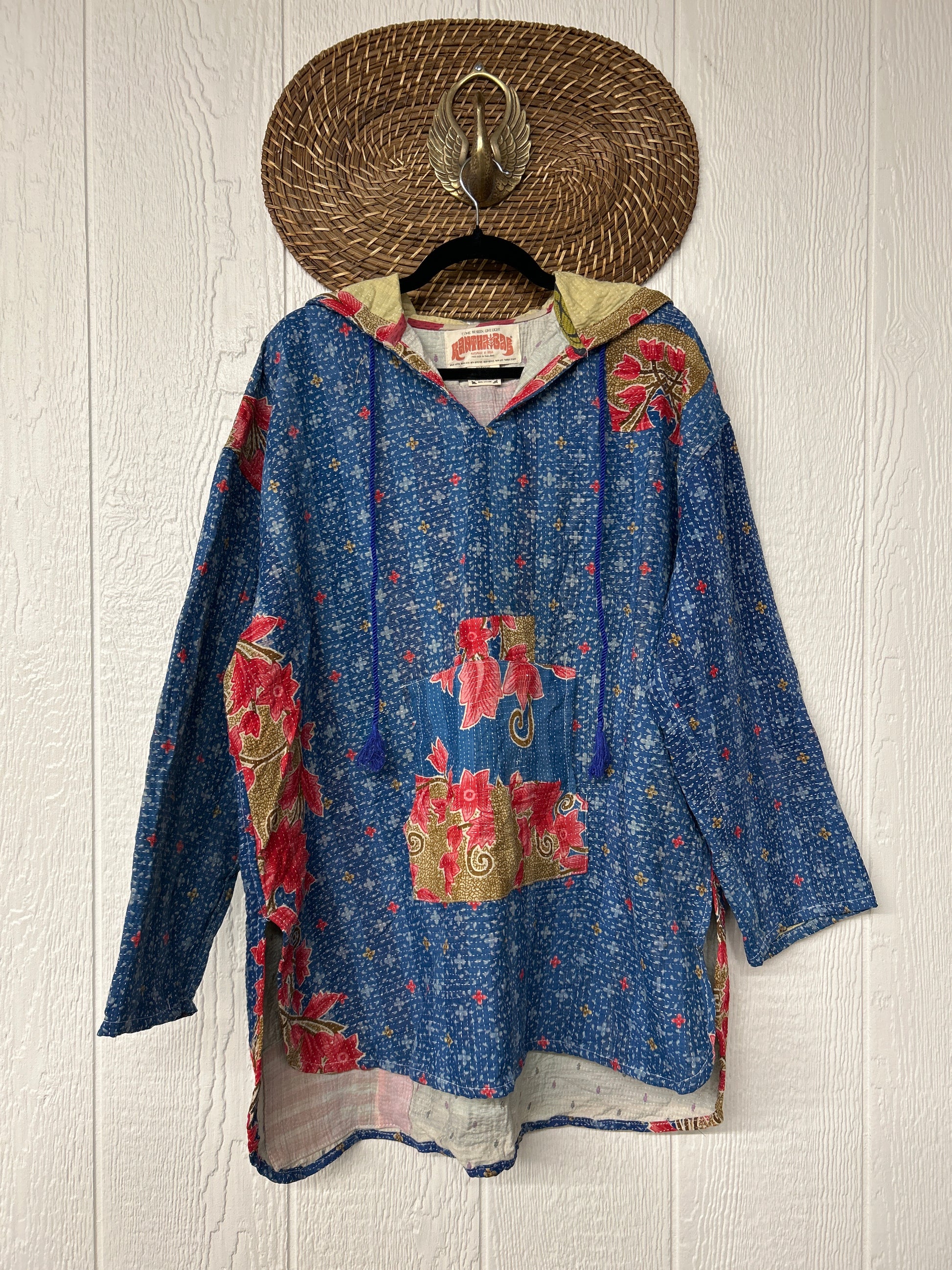 Made from our ultra lux fine Kantha stitch cotton sari these hoodies feature