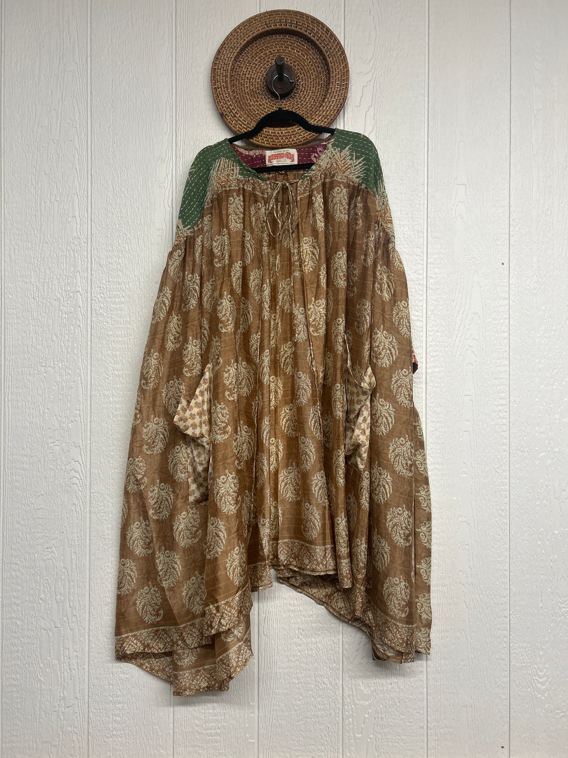 Our vintage styles have lived a full life before becoming the designs in our shop. Fabrics may have small threads or holes in the layers. Color inconsistency or small stains may be present. The saris are sewn together and extend the life of each design. Imperfections should be celebrated.