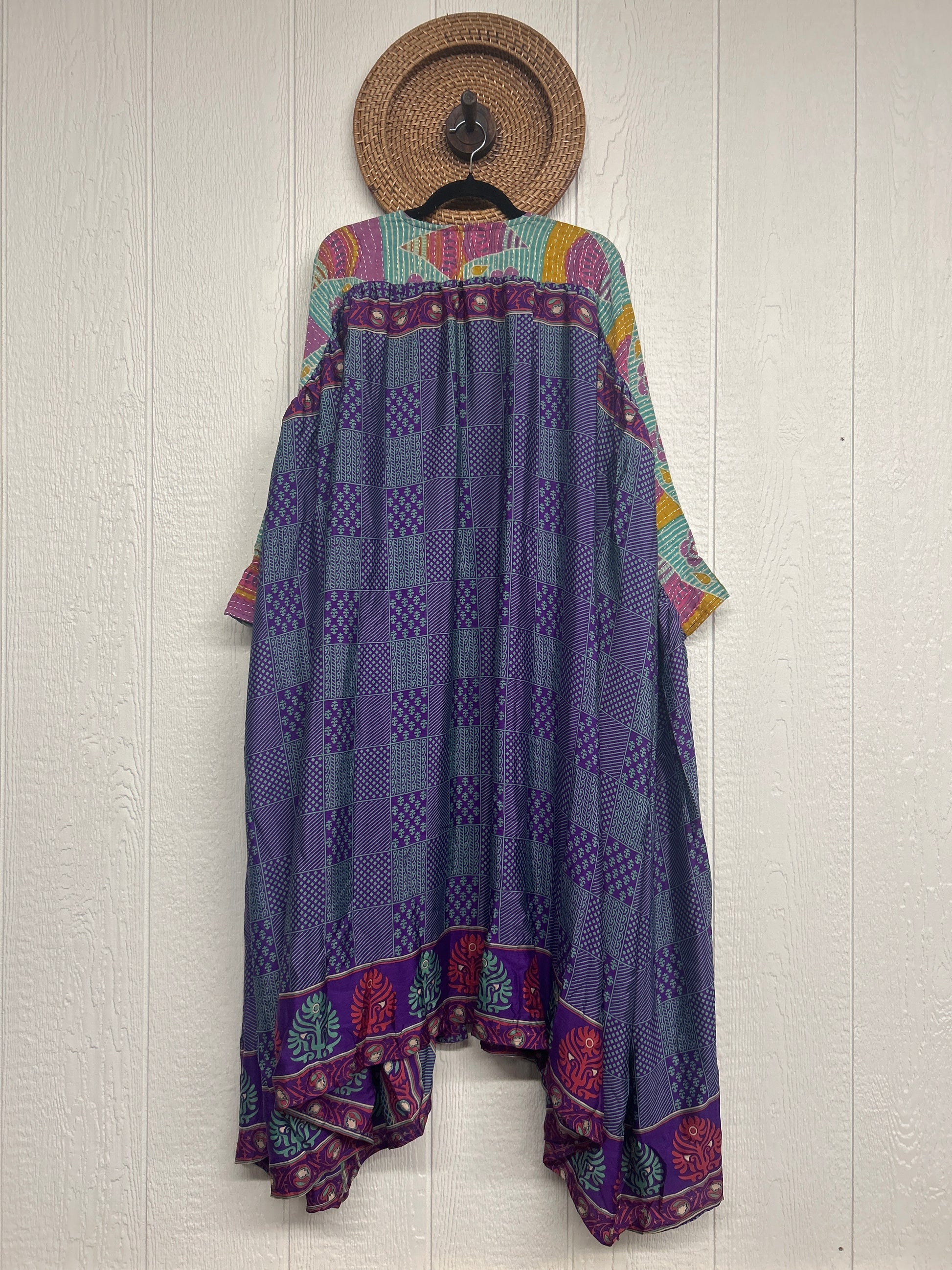 Twirl around to your heart's delight in our new Fleetwood Kimono. This floaty dream is a divine mix of our ultra lux Kantha embroidered vintage cotton and rasgulla sari. Features a tie neck closure and slouchy exterior pockets.