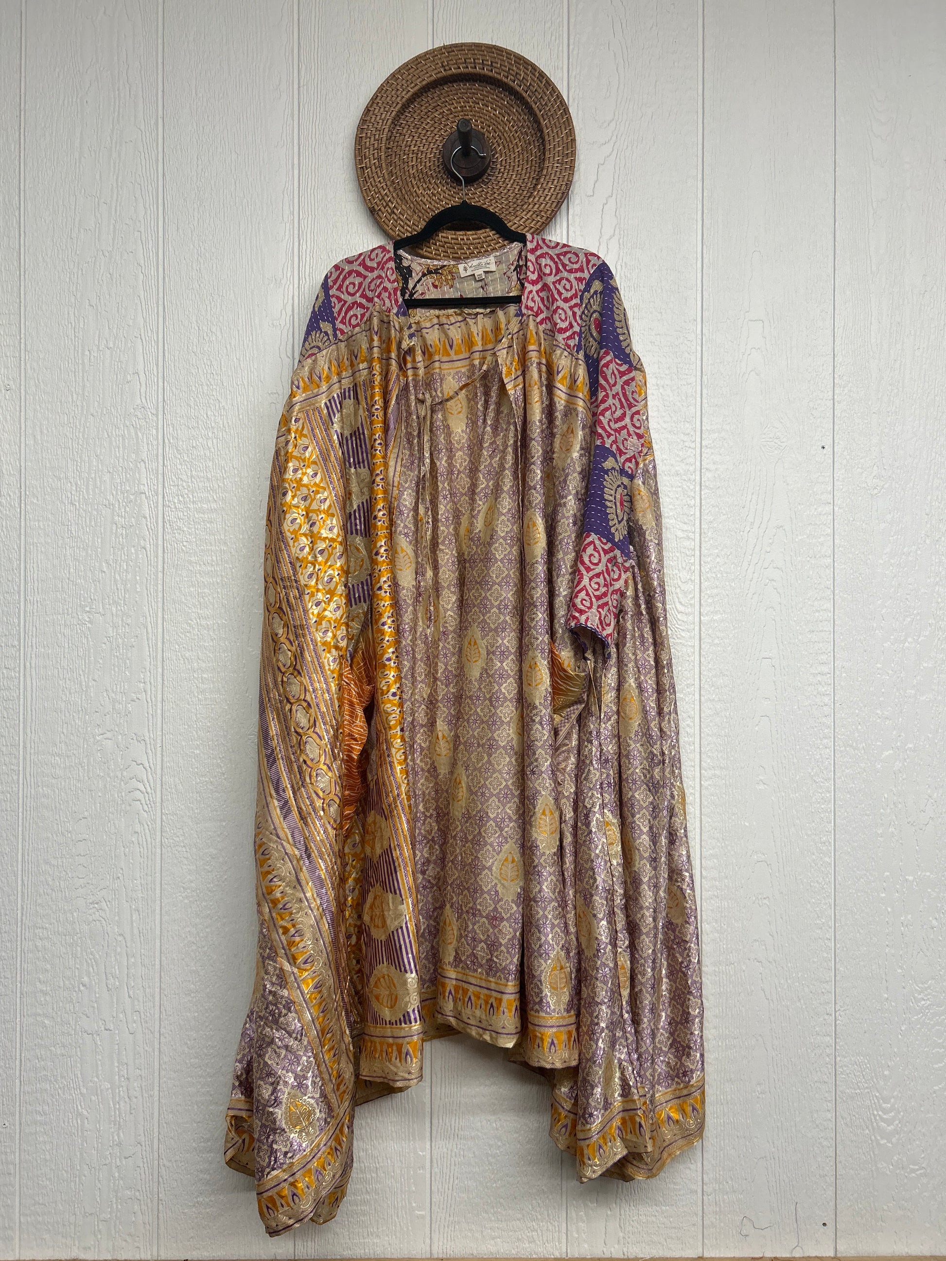 Twirl around to your heart's delight in our new Fleetwood Kimono. This floaty dream is a divine mix of our ultra lux Kantha embroidered vintage cotton and rasgulla sari. Features a tie neck closure and slouchy exterior pockets.