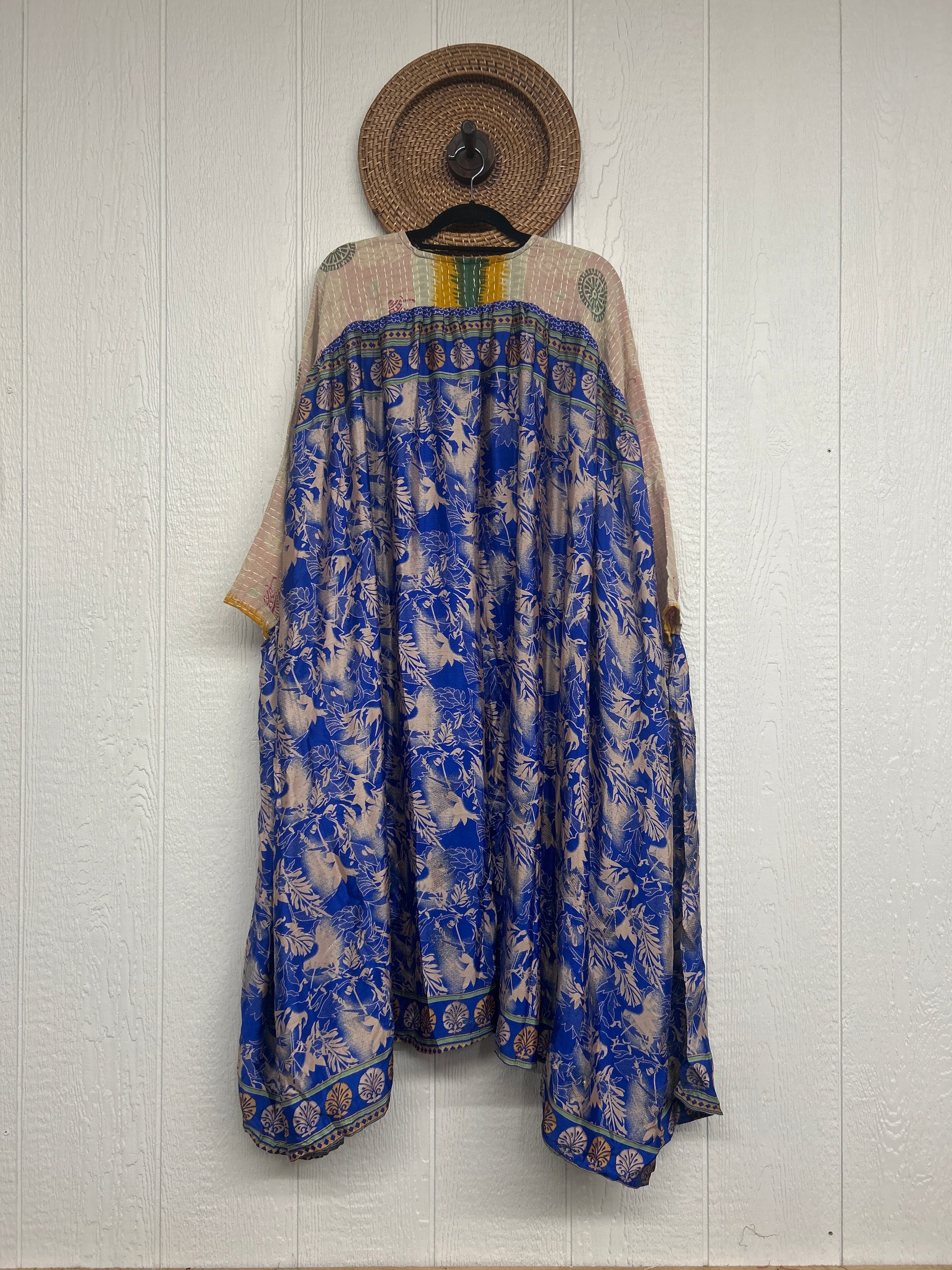 Twirl around to your heart's delight in our new Fleetwood Kimono. This floaty dream is a divine mix of our ultra lux Kantha embroidered vintage cotton and rasgulla sari. Features a tie neck closure and slouchy exterior pockets.